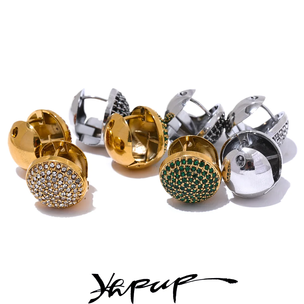 Yhpup блестящие серьги-кольца из нержавеющей стали с кубическим цирконием
