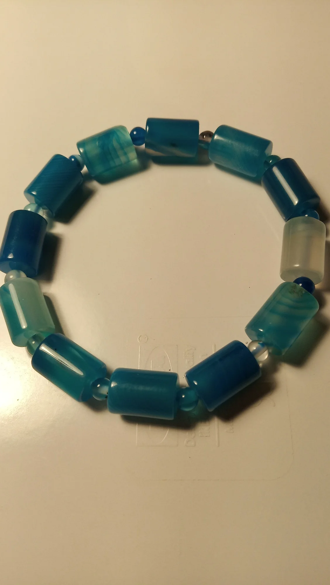 Неплохой. Красивый цвет. Правда, один цилиндр простой прозрачный. Помимо этого, один камень с трещиной сквозной (возможно, склеен), три камня с некрасивой проточкой: когда два раза сверлили, а второй раз до половины цидиндра, и это недоотверстие проглядывает через полупрозрачный камень. Размер мне не понравился. У меня неширокое обычное запястье 16,5, и мне этот браслет без зазора вообще. На одном из моих фото этот синий с браслетом из этого же магазина нормального размера. Разница видна. Продавец любезно предложил купон, с ним этот браслет получился 265 рублей. Считаю, что эта цена норм, но не дороже. И потом, некрасиво дарить купоны и продавать при этом брачок.