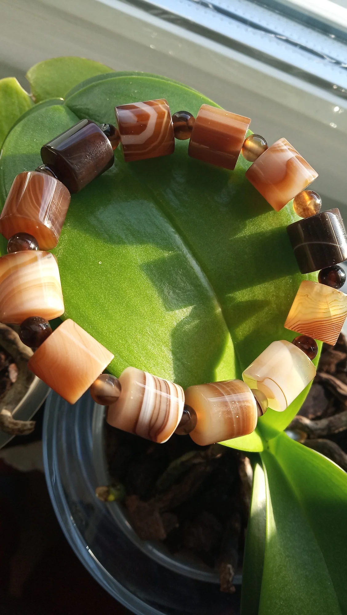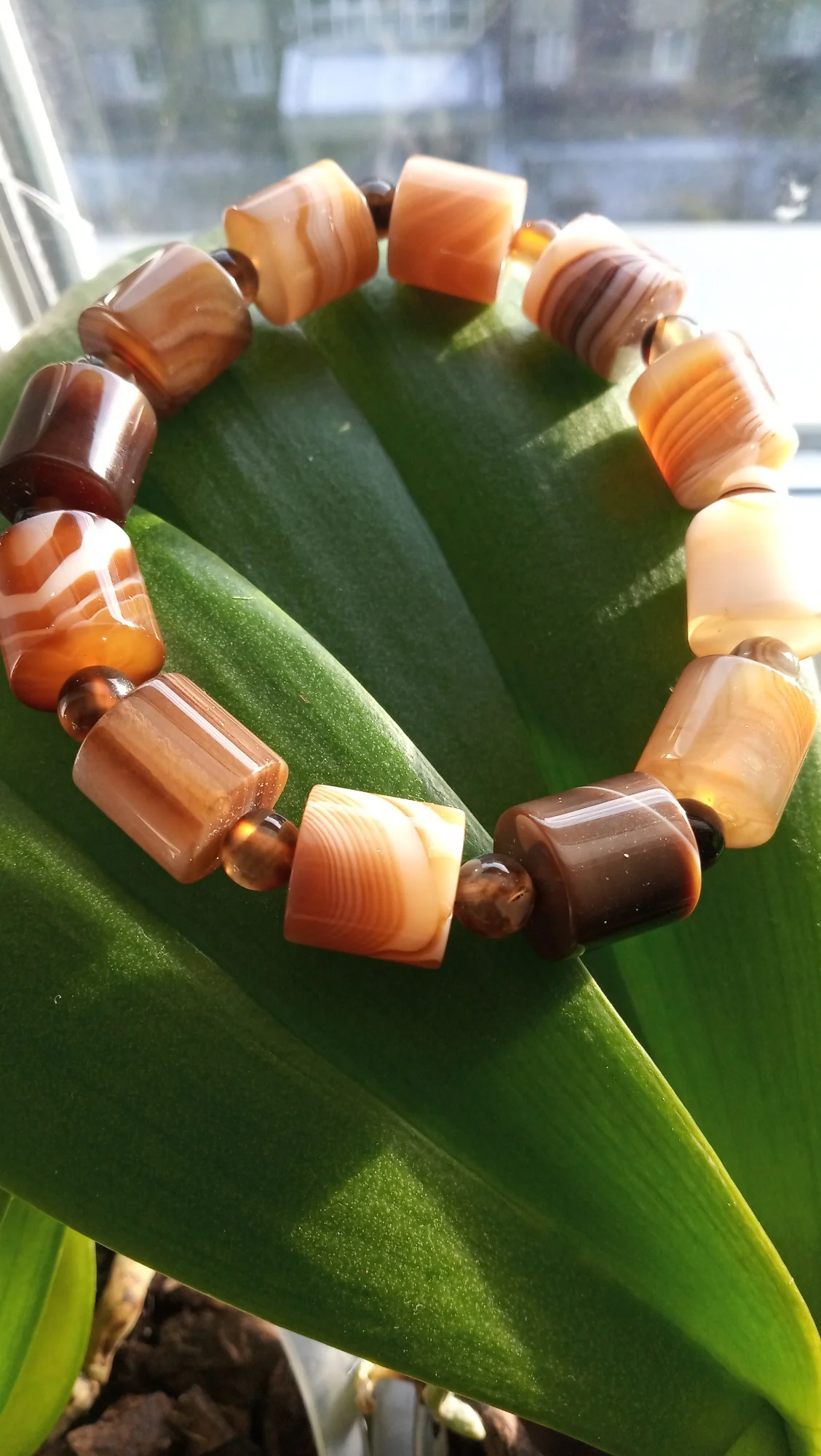 Заветные полосочки! Цвет капучино. Милота нежнейшая. Фотала с двух сторон, так как агат здесь волшебный, имеет такую структуру, которая проявляется по-разному при разном ракурсе. Агатик обработан очень качественно, браслет собран со вкусом. Стопроцентное счастье💓Процветания и достатка замечательным продавцам и мастерам этих замечательных изделий!💓Эти браслеты хочется носить, не снимая.