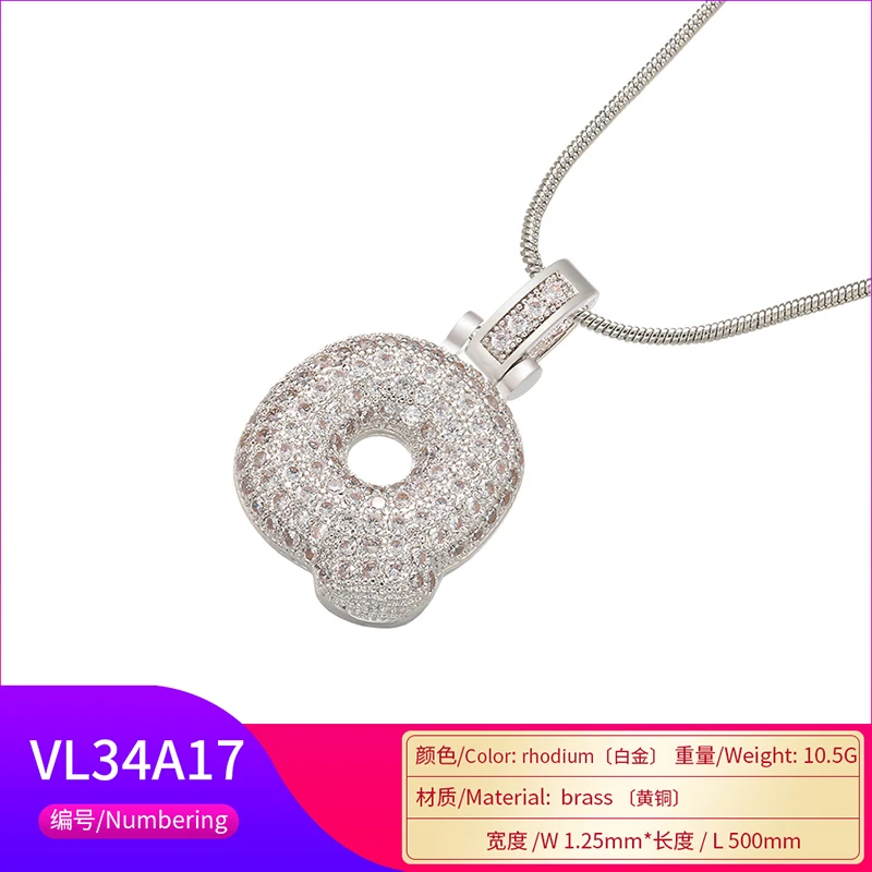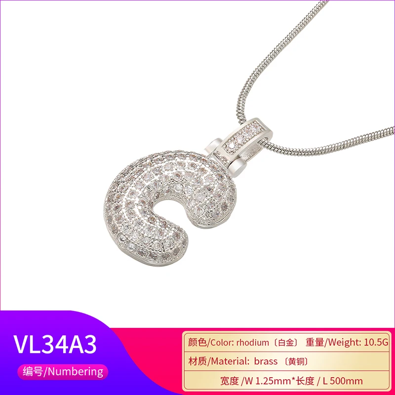 ZHUKOU Silver color Bubble initial letters necklaces 26 letters pendants...