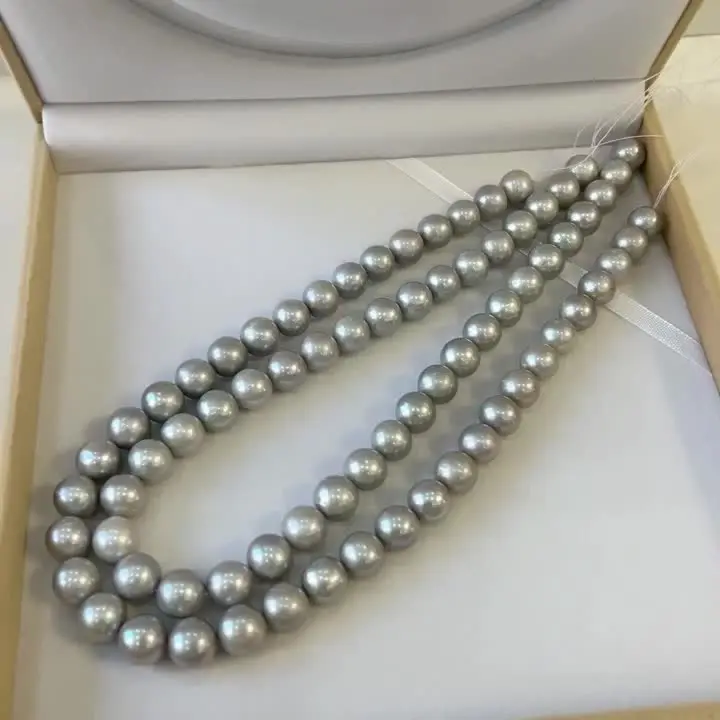 100% пресноводный жемчужный материал круглой формы-Натуральный светло-серый...