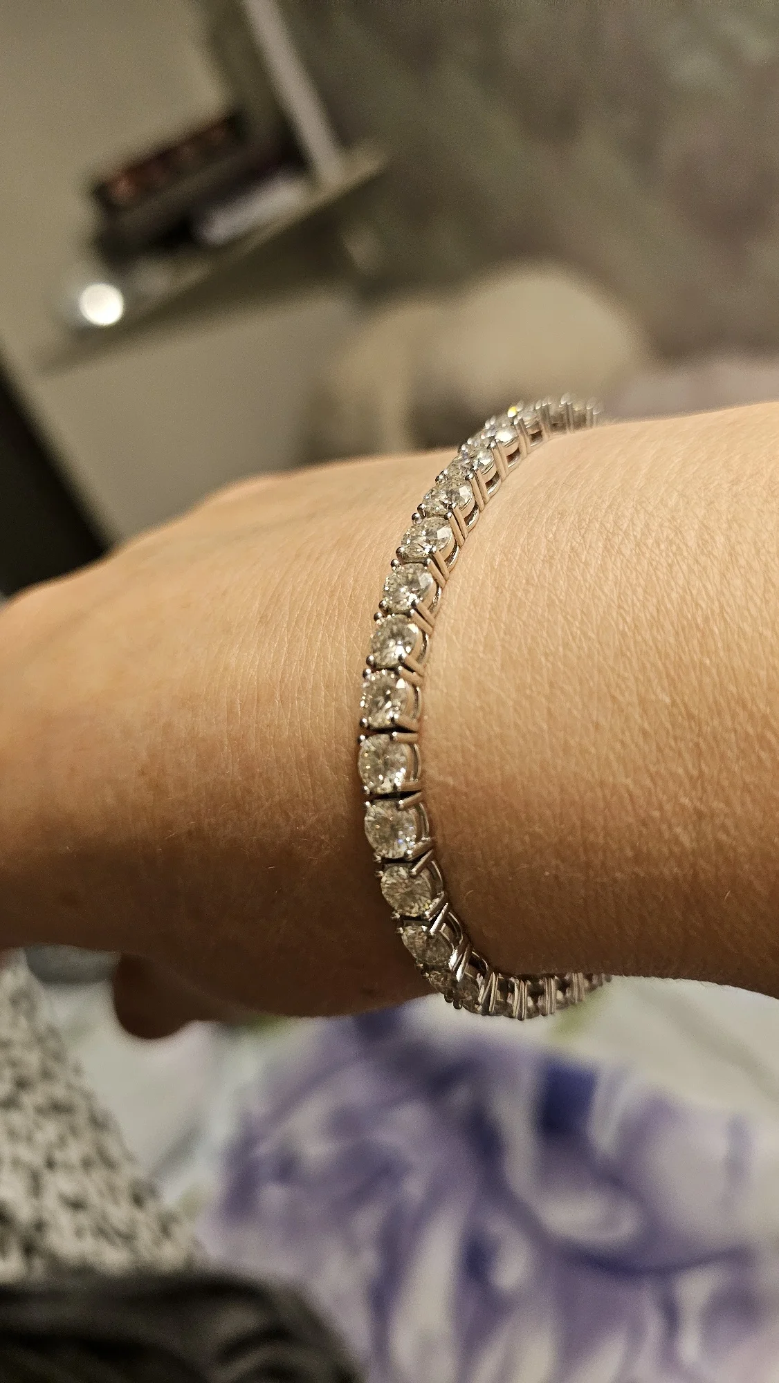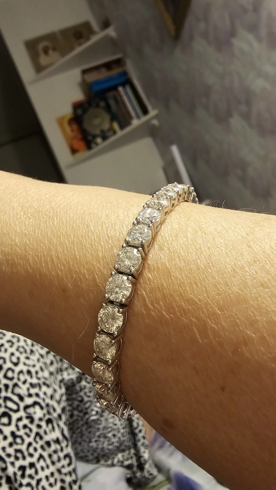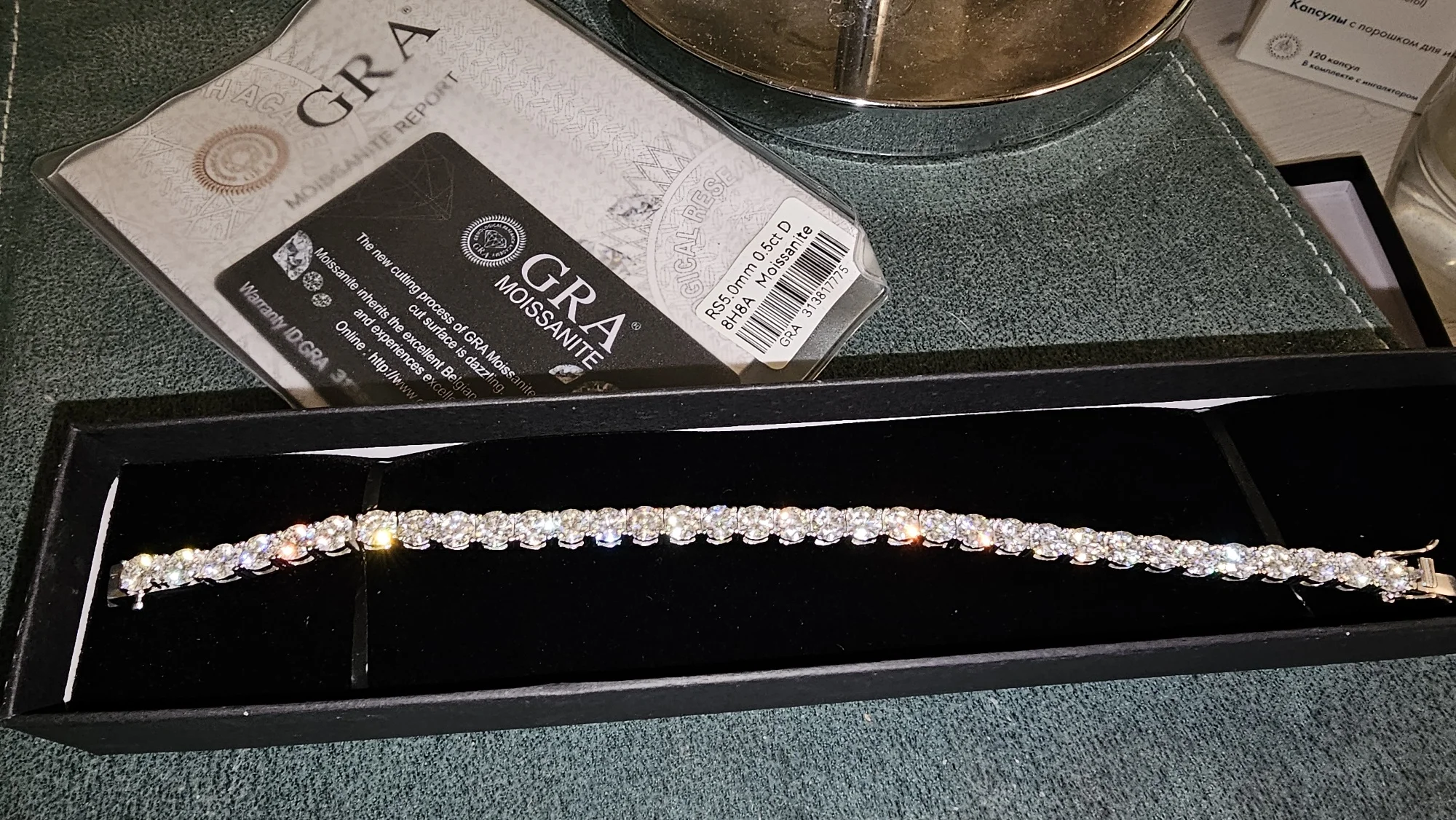 Крупный браслет. Думаю больший размер женщине и не надо (будет вульгарно). Сделано качественно, аккуратно. За одежду не цепляет. замок надежный. Теннисный браслет - классика. Муассонит достойный заменитель брилиантов. Сертификат был в наличии. Продавец не обманул. Я очень, очень рада!Beliaeva I. 22 ноября 2024