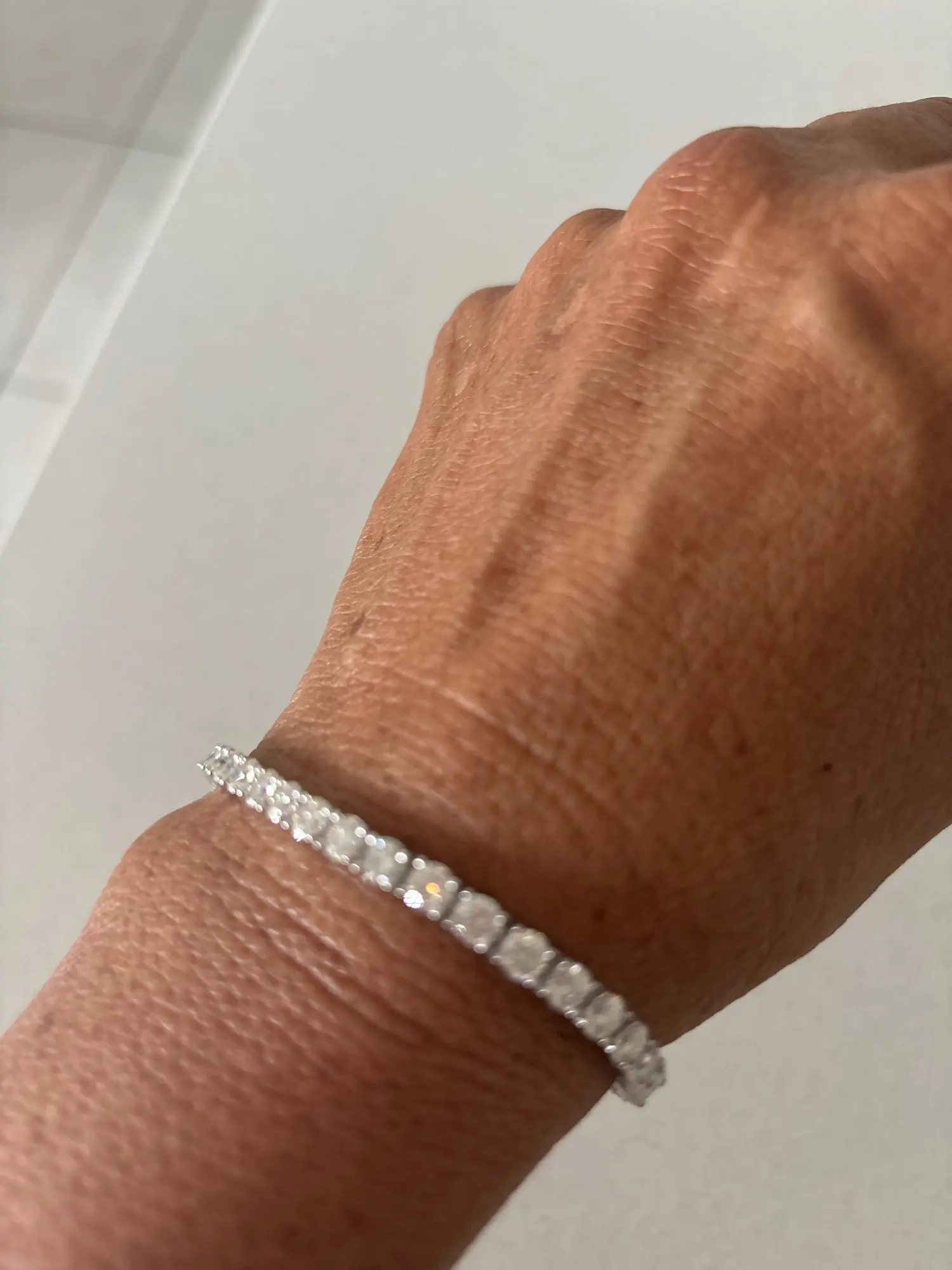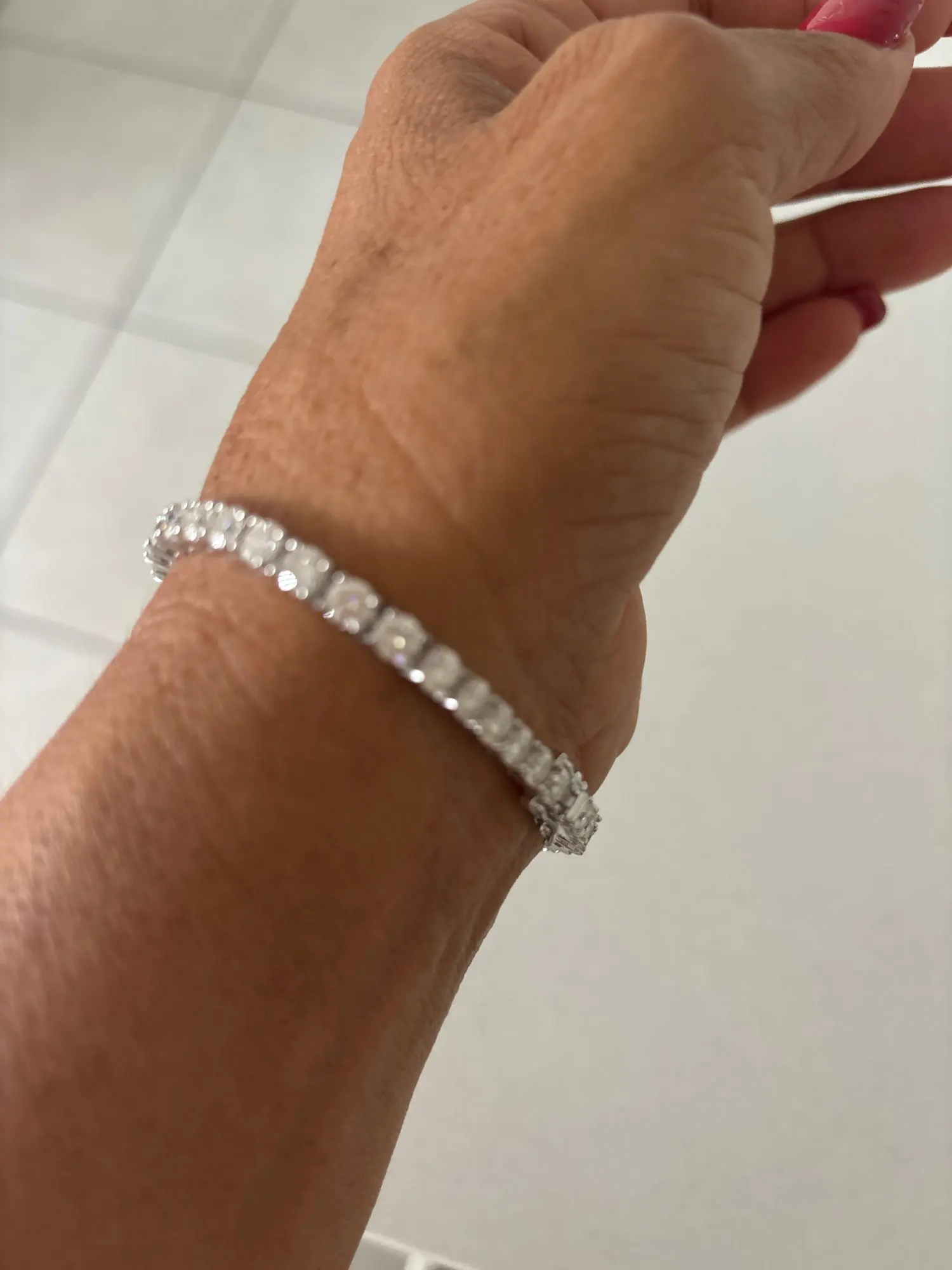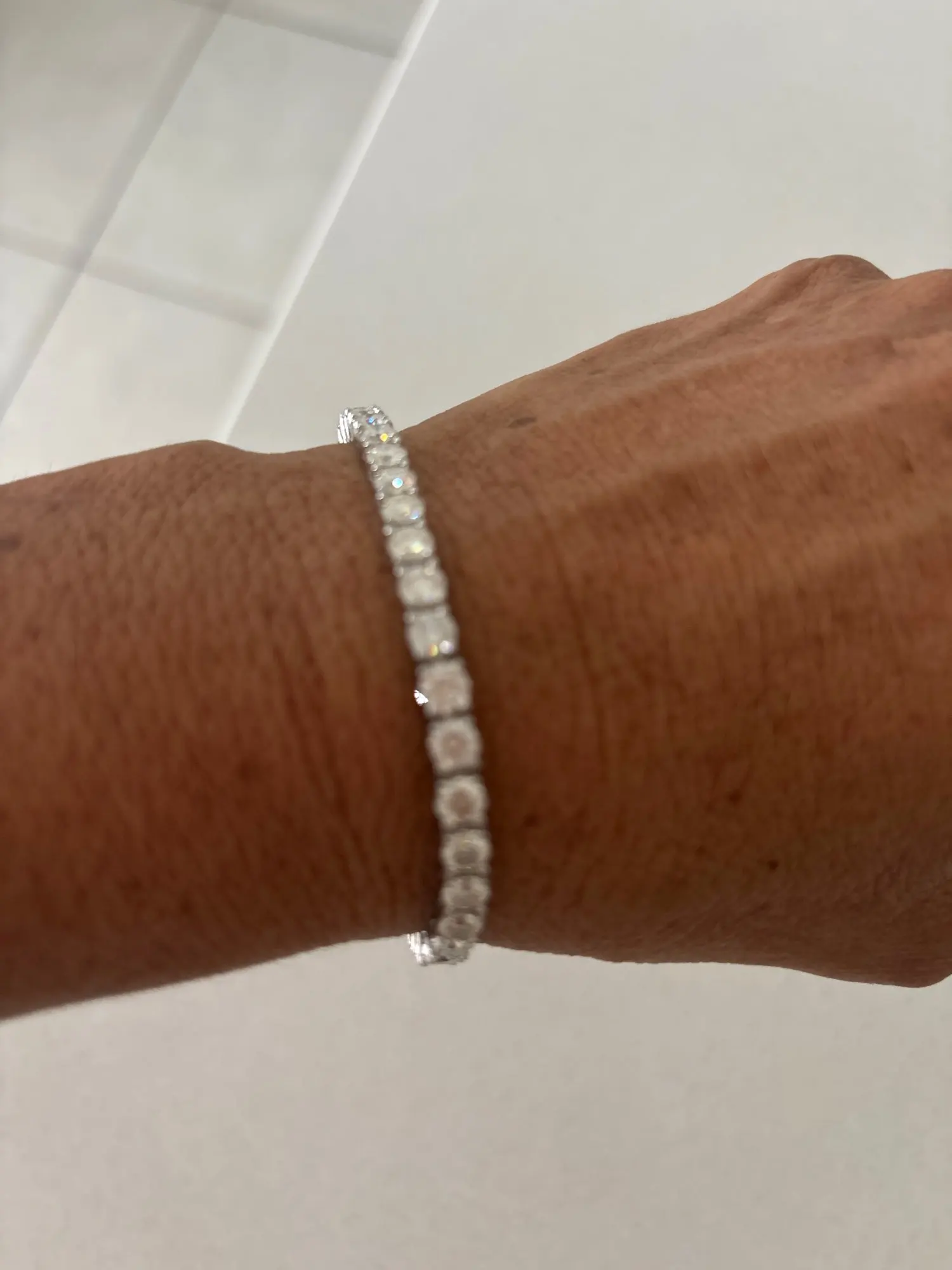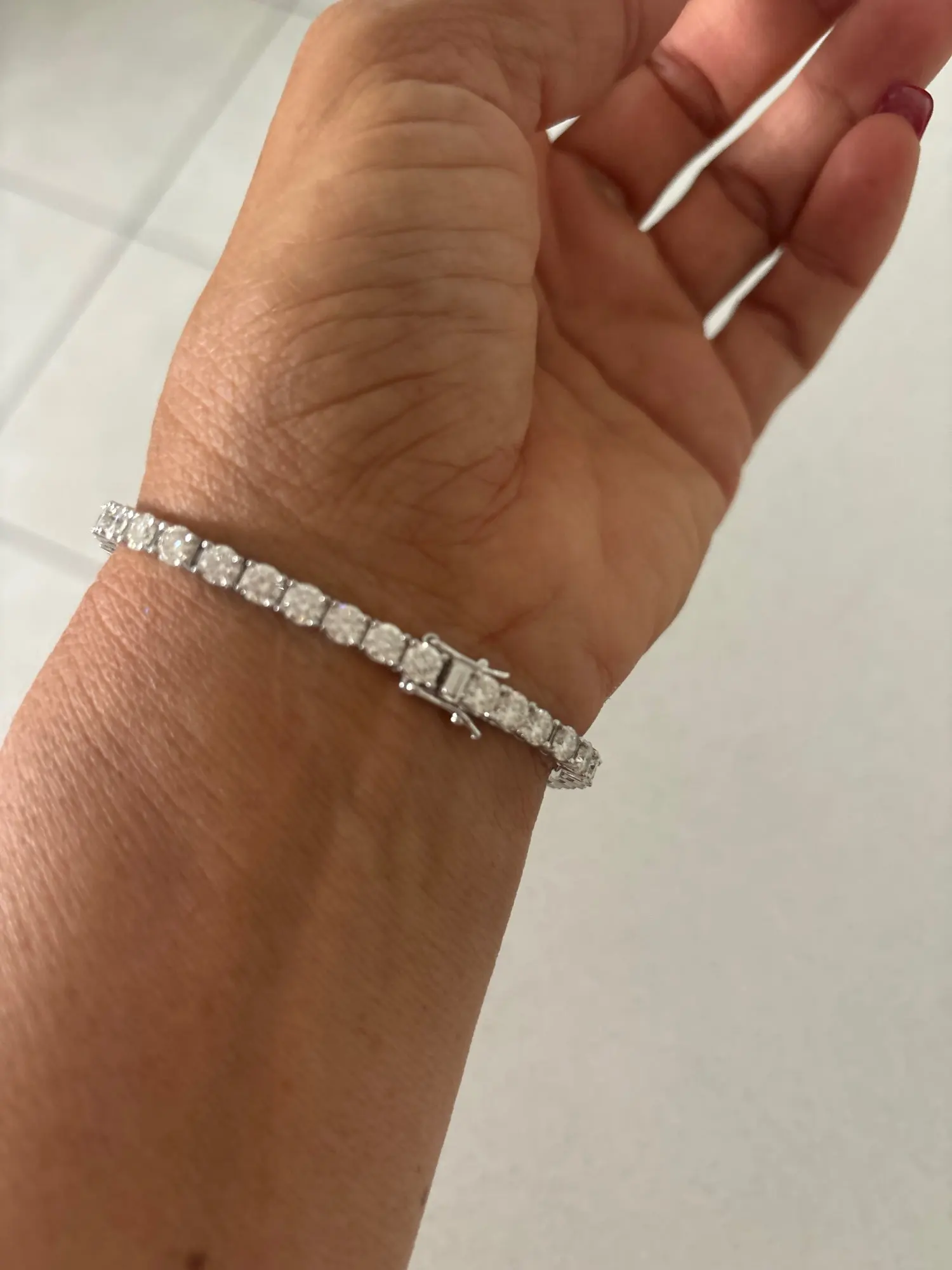 Действительно гламурный браслет из муассанита 4 мм 19 см (7,5 дюймов). Я измерил запястье перед покупкой (17,9 см) + 1 см для комфорта (= 18,9 см. Браслет ближайшей длины 19 см на выбор. Он действительно идеален по длине, комфорт и превосходные камни, очень блестящие, сверкают намного лучше, чем бриллианты. Купите второй браслет сегодня. Купил, чтобы проверить, как размер великолепно подходит, а теперь покупает второй, браслет и, возможно, рождественские подарки для других. Очень счастливый😃… Спасибо продавцу: очень ценю🩷❤️🧡💛💚🩵💙💜🩷❤️🧡💛💚🩵💙💜🩷❤️🧡💛💚