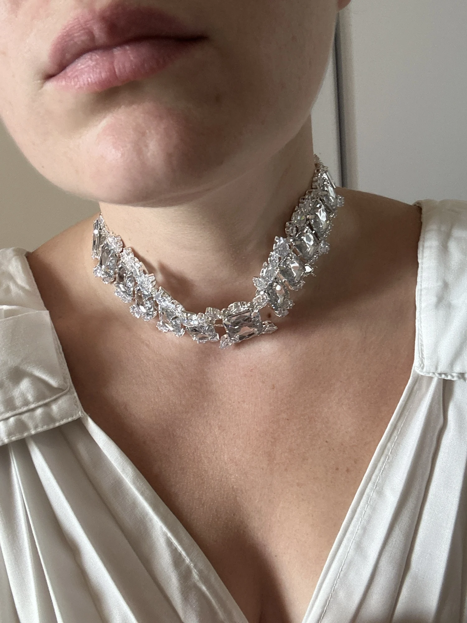 хотелось бы петь оды этой красоте, ибо ожерелье шикарное, но его носка при данных обстоятельствах затруднена 1. гвоздик одной сережки (на фото снизу) на столько толстый, что надеть нереально 2. моя шея 35 см (не худая, нормальная) и на самую близкую цепочку не застегнуть (спасибо помогут ювелиры) 3. основнлй камень по центру был не ровно припаян, из-за чего на шее гладко не располагется, (по фото видно некую девормацию цепей, и это не изменить, только сломать) 4. ИЗНАЧАЛЬНО ПРОДАВЕЦ ПОЛОЖИЛ УКРАШЕНИЕ С БРАКОМ БЕЗ КАМНЯ. лучше бы дурочка включили и положили бы камешек, и я бы просто отремонтировала, а тут к сожалкнию вероятность носки близка к 0. надеюсь вам повезет больше, ибо ну очень крссиво)