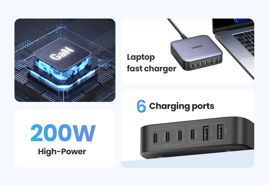 UGREEN 200W GaN Charger Desktop Laptop Fast Charger 6 in 1 Adapter For iPhone...