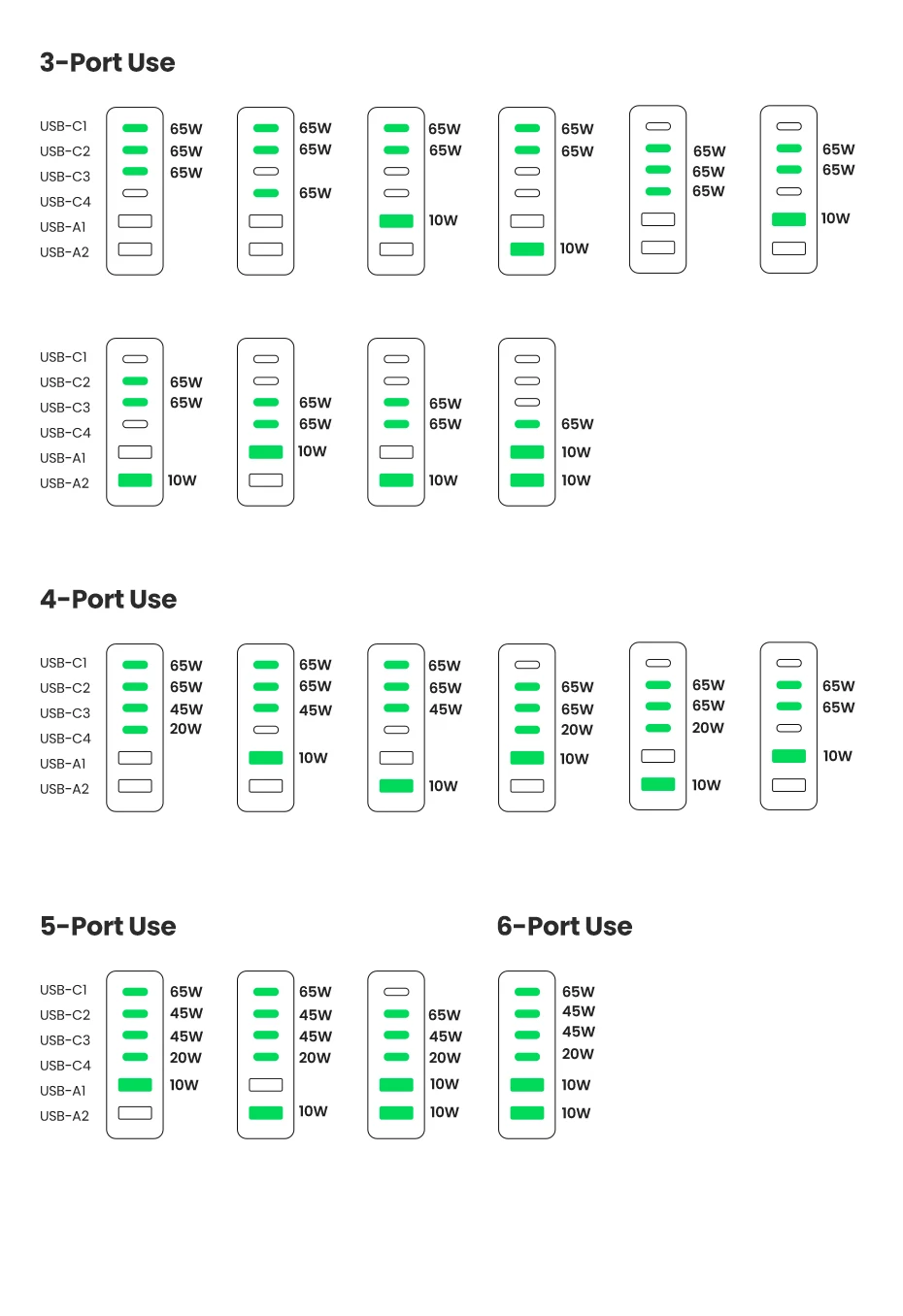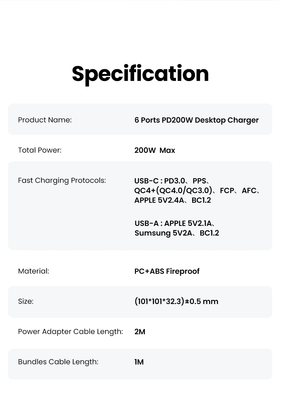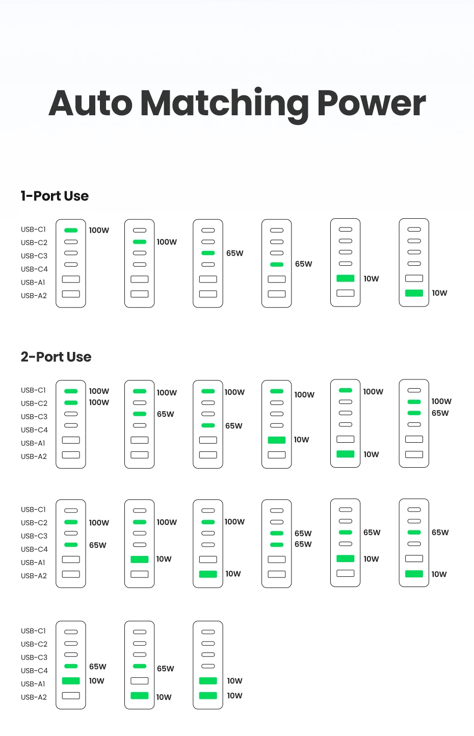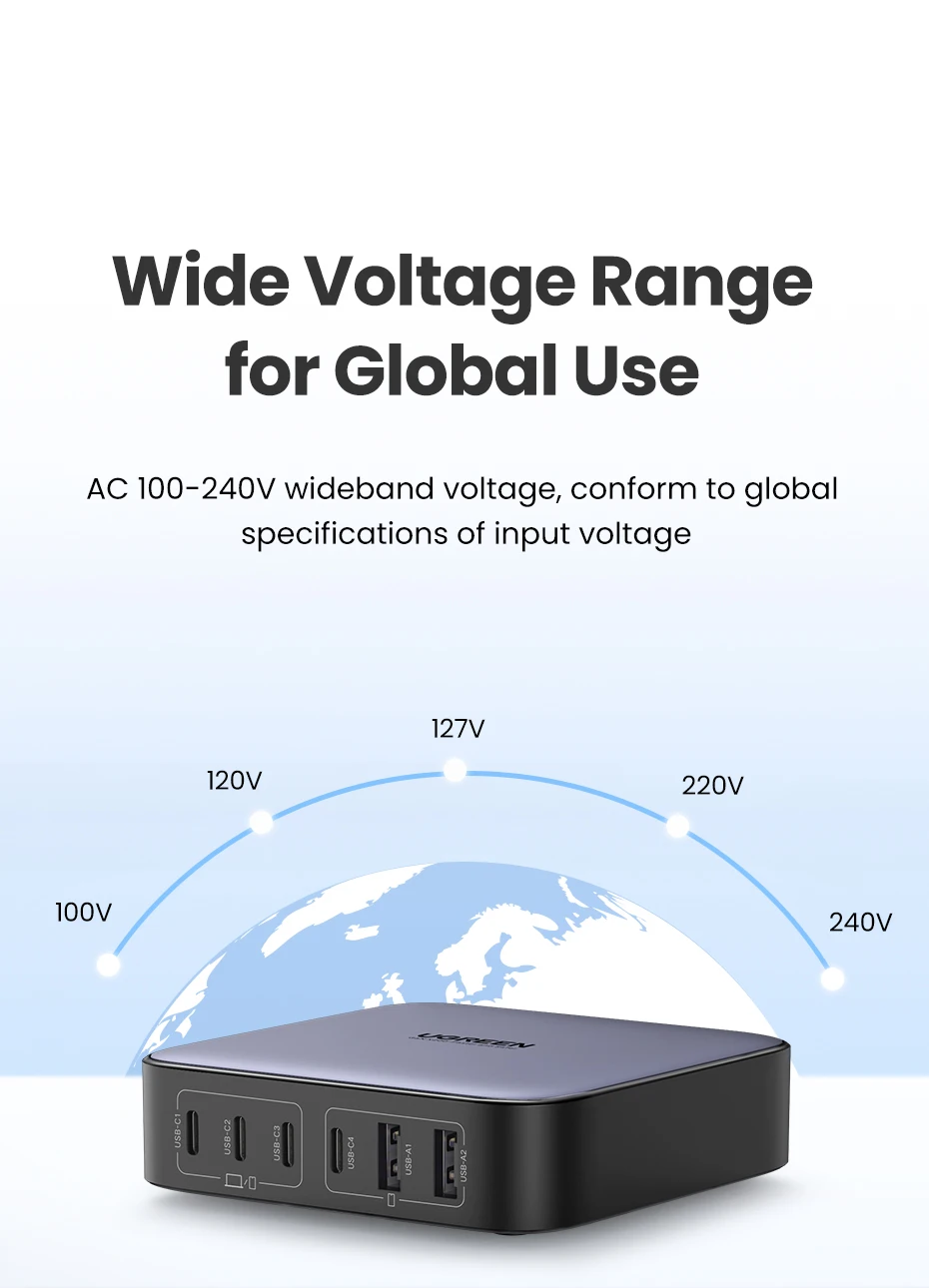 Устройство зарядное сетевое UGREEN, 200 Вт, 6 в 1, для планшетов и телефонов