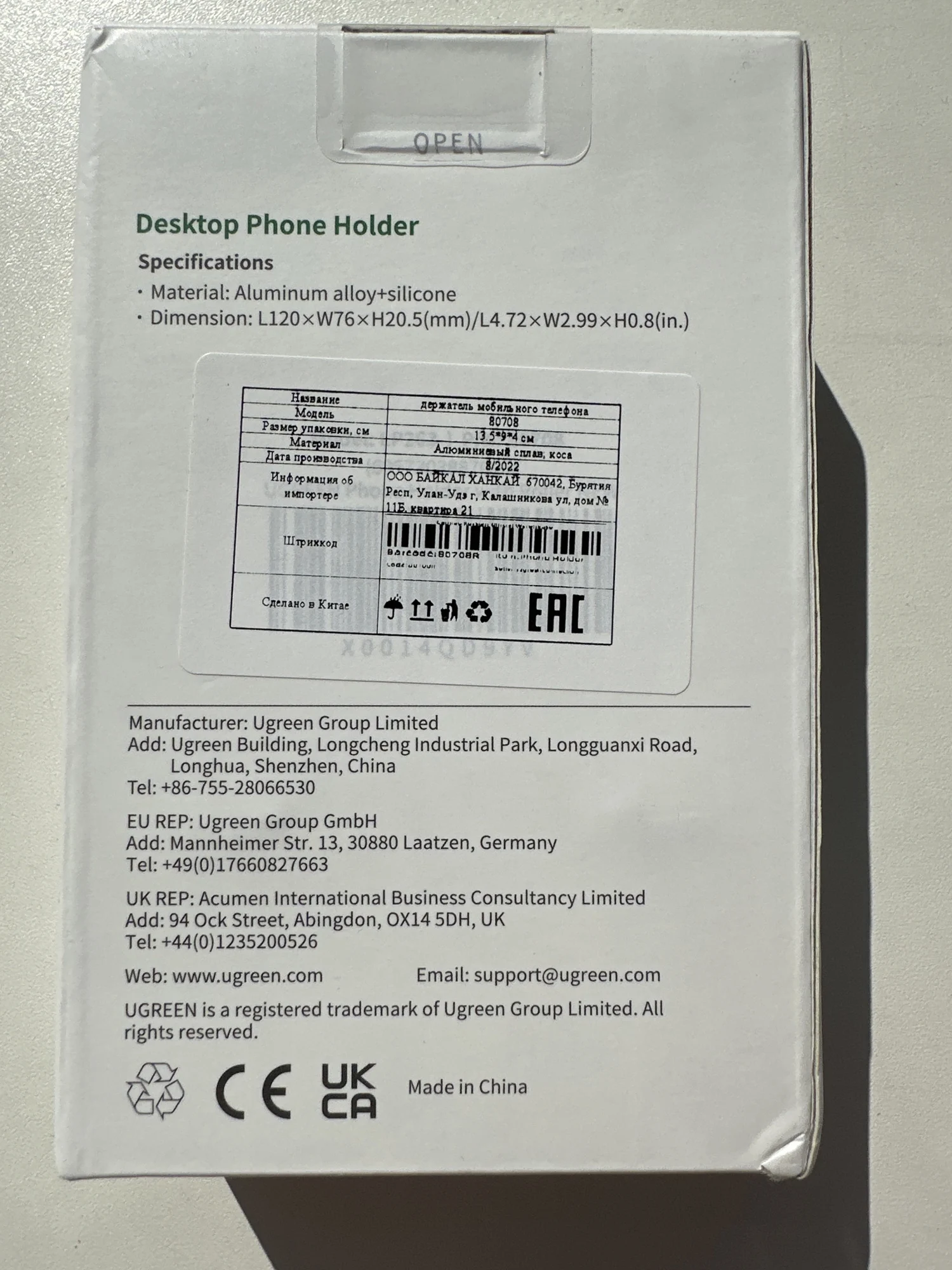 С компактным сложенным размером 4,72 "x 3,94" x 3 ", подставка для мобильного телефона UGREEN портативна для путешествий, дома и офиса.