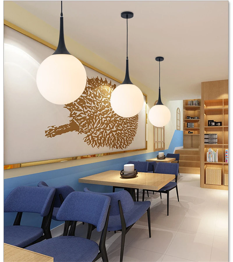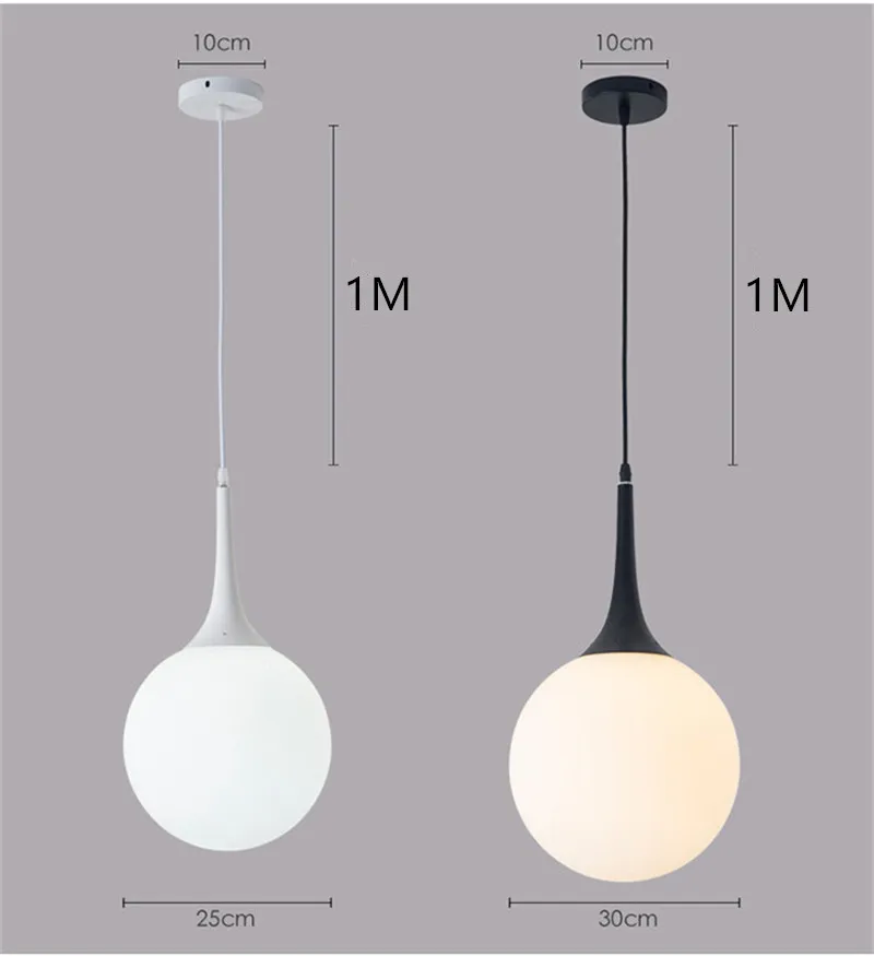 Nordic White Glass Ball Pendant Lights Living Room Decoration LED Pendant Lamp...
