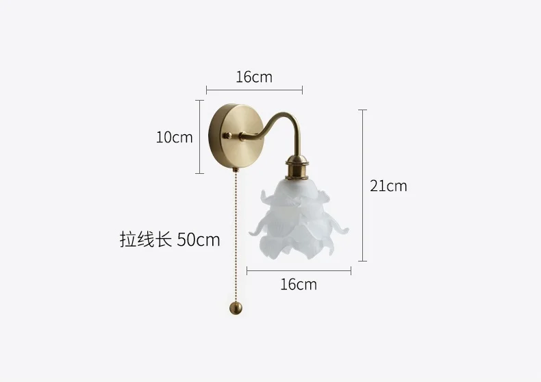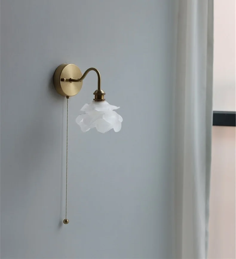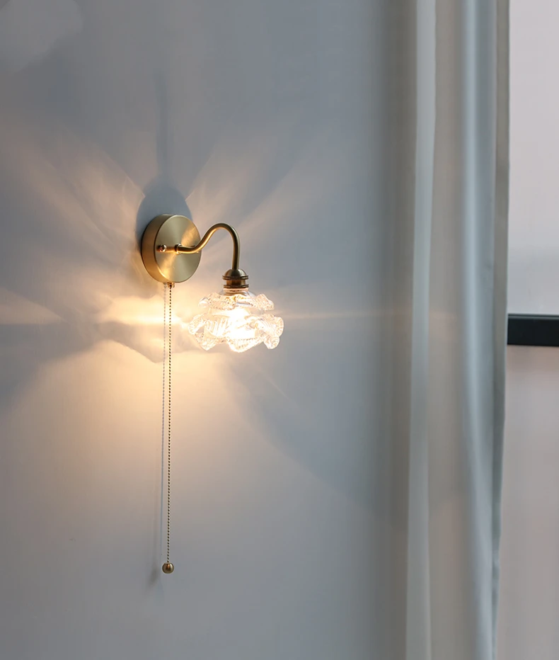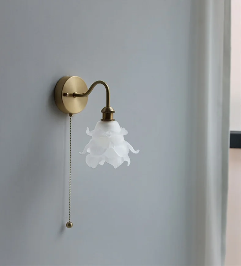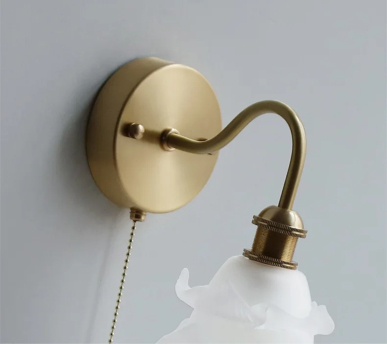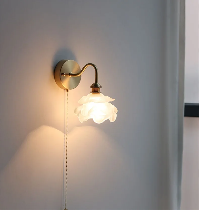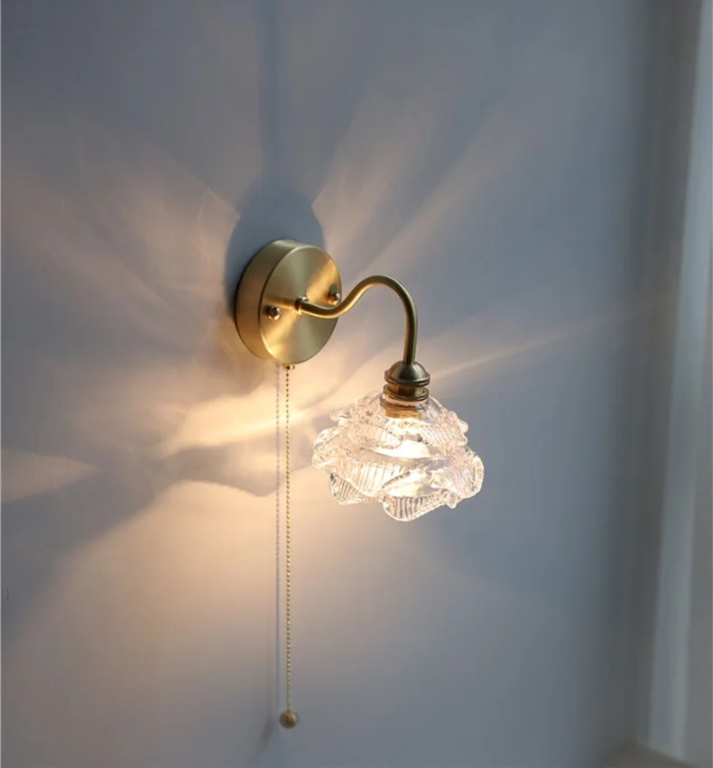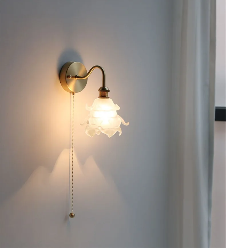 IWHD Flower Glass Copper Wall Lamp Sconce Pull Chain Switch LED Bedroom...