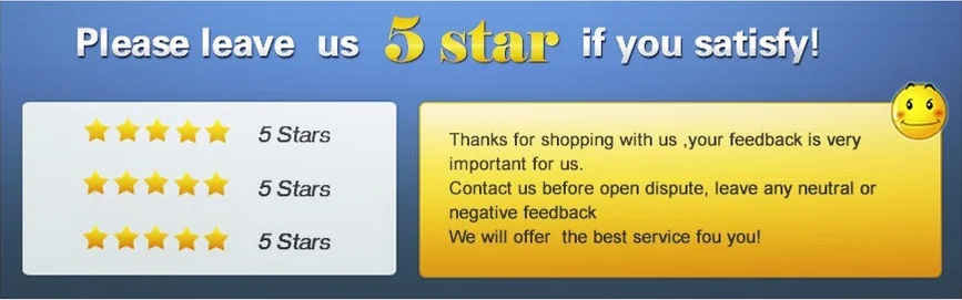 Поскольку ваш отзыв очень важен для развития нашего бизнеса, мы искренне приглашаем вас оставить нам положительный отзыв, если вы удовлетворены нашими продуктами и услугами. Спасибо тебе!