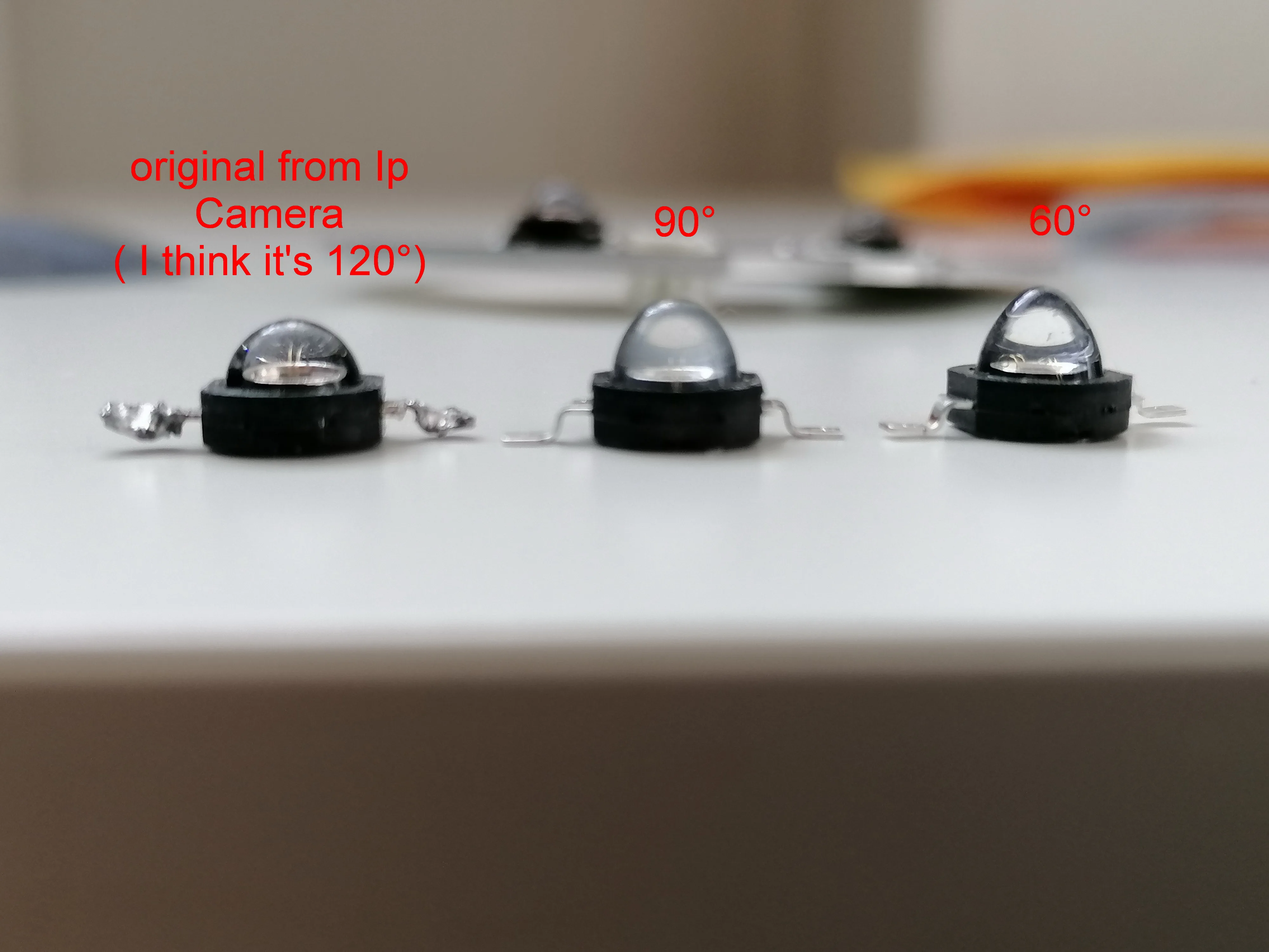 ИК-светодиоды в порядке. Но общение с продавцом плохое. Я заказал 90 градусов и попросить его отправить 5 штук 90 градусов и 5 штук 120 градусов, но он прислал мне 60 градусов. Ступня светодиода показывает поляризацию, и это хорошо. Я купил его для своей ip-камеры, так что я был в состоянии исправить его без каких-либо проблем. Ночное видение работает снова без проблем. Изначально было установлено 120 градусов, и я установил 90 градусов. Не забывайте, что чем больше количество, тем шире ИК-свет рассеивается. 60 градусов узкая и очень широкая и 120 градусов очень широкая и короткая. 90 градусов идеально.Savas O. 31 марта 2022