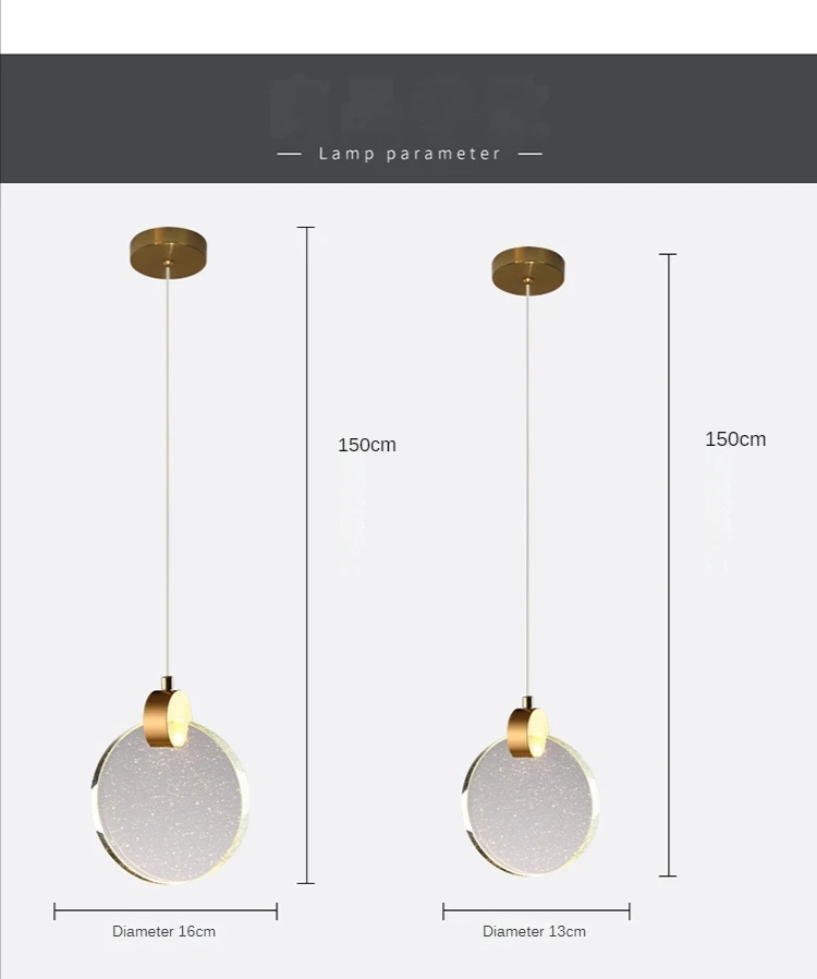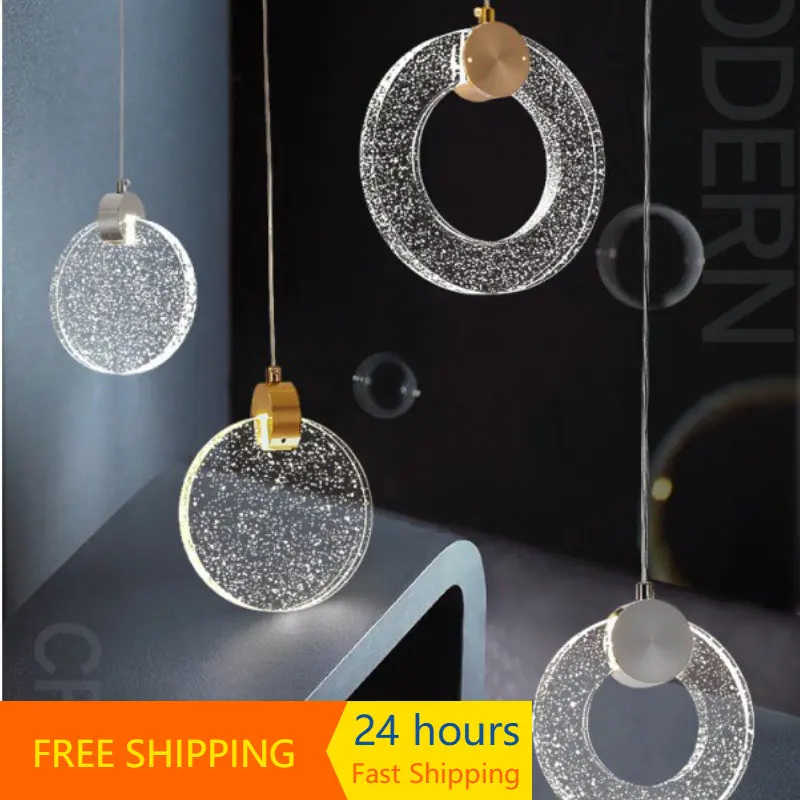 Modern Led Crystal Pendant Light for Bedroom Bedside Hanging Lamp Fixture...