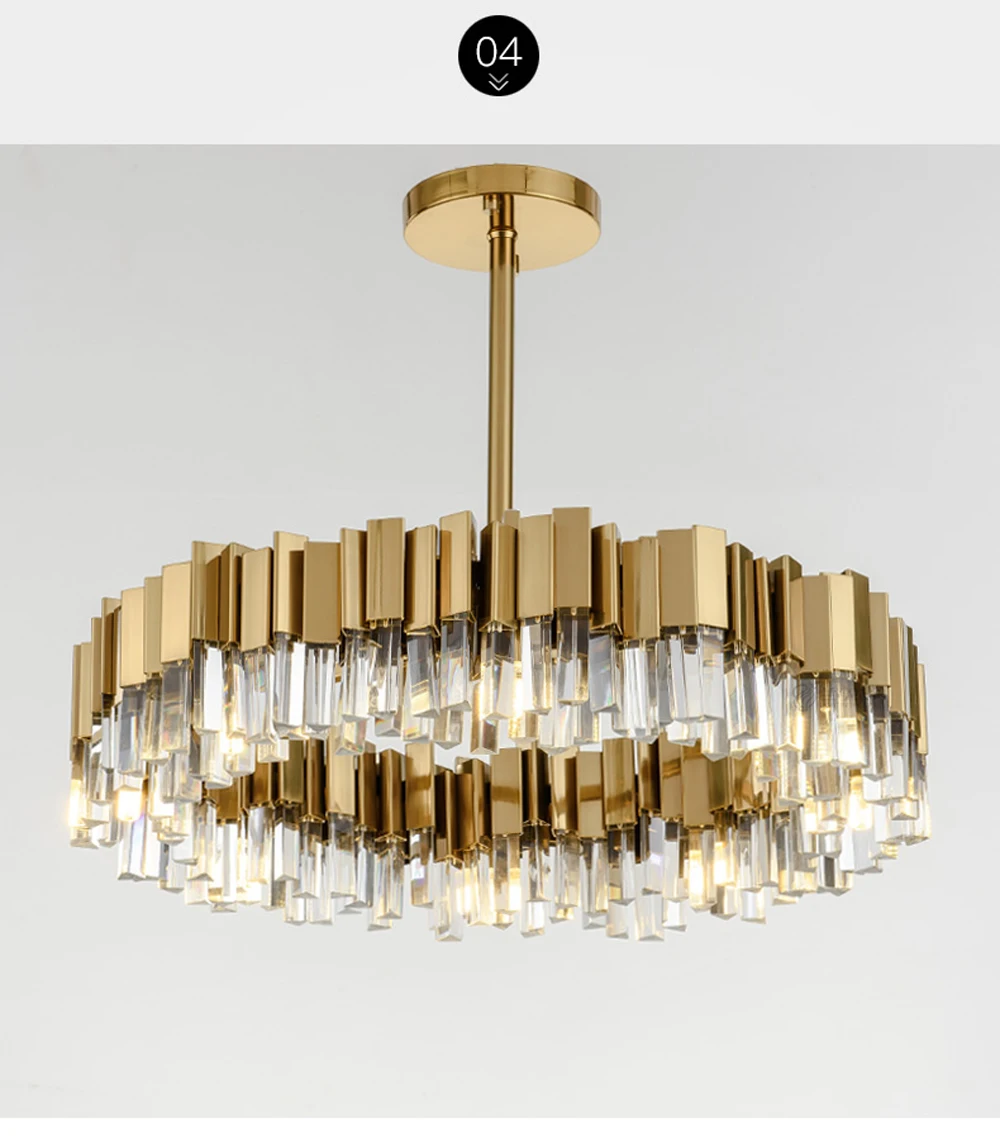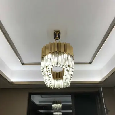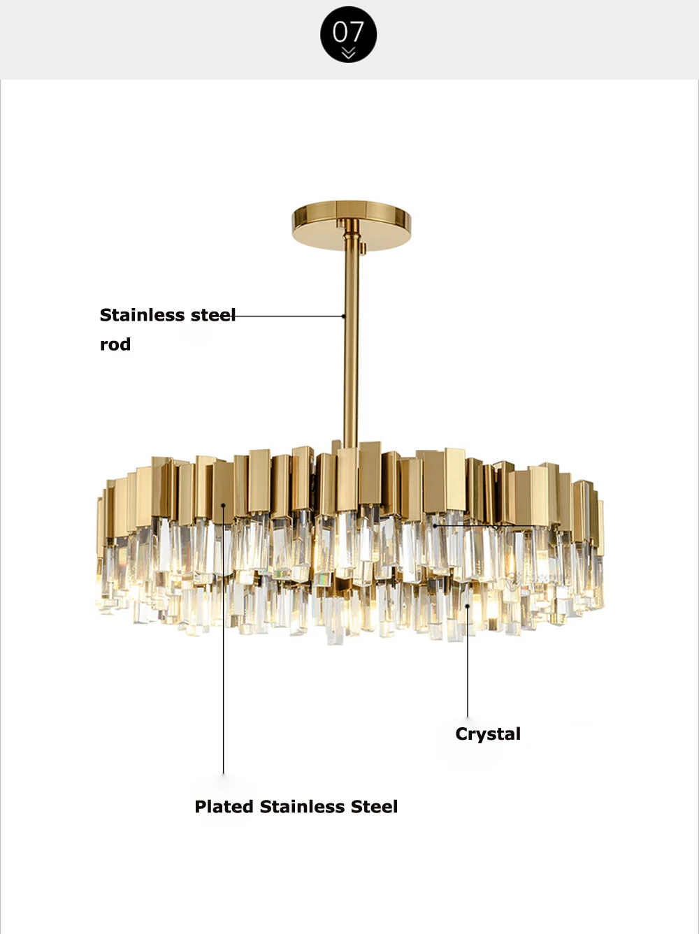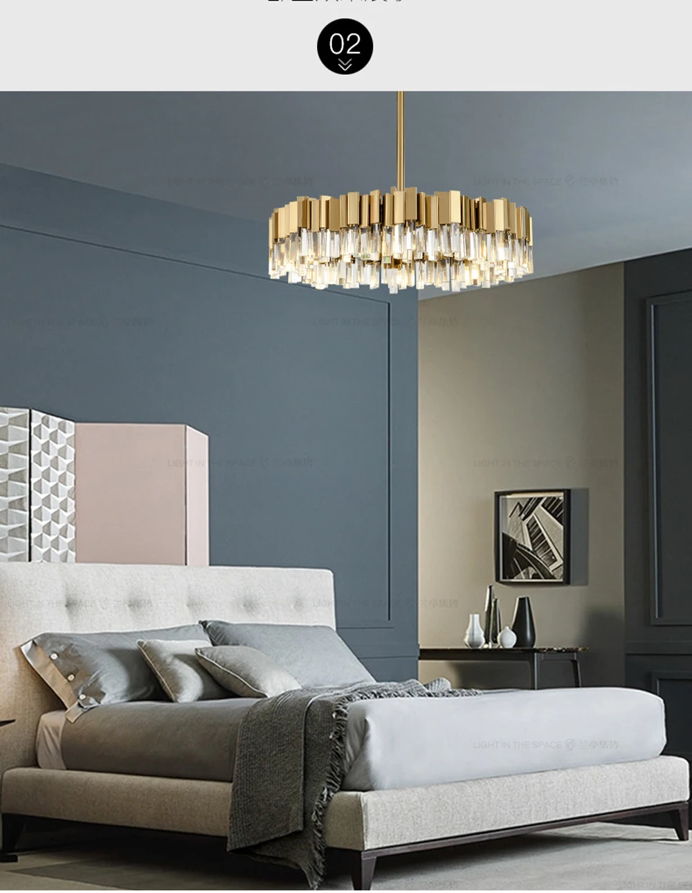 LED Postmodern Golden Stainless Steel Crystal Round Designer Chandelier Lighting Lustre Suspension Luminaire Lampen For Foyer