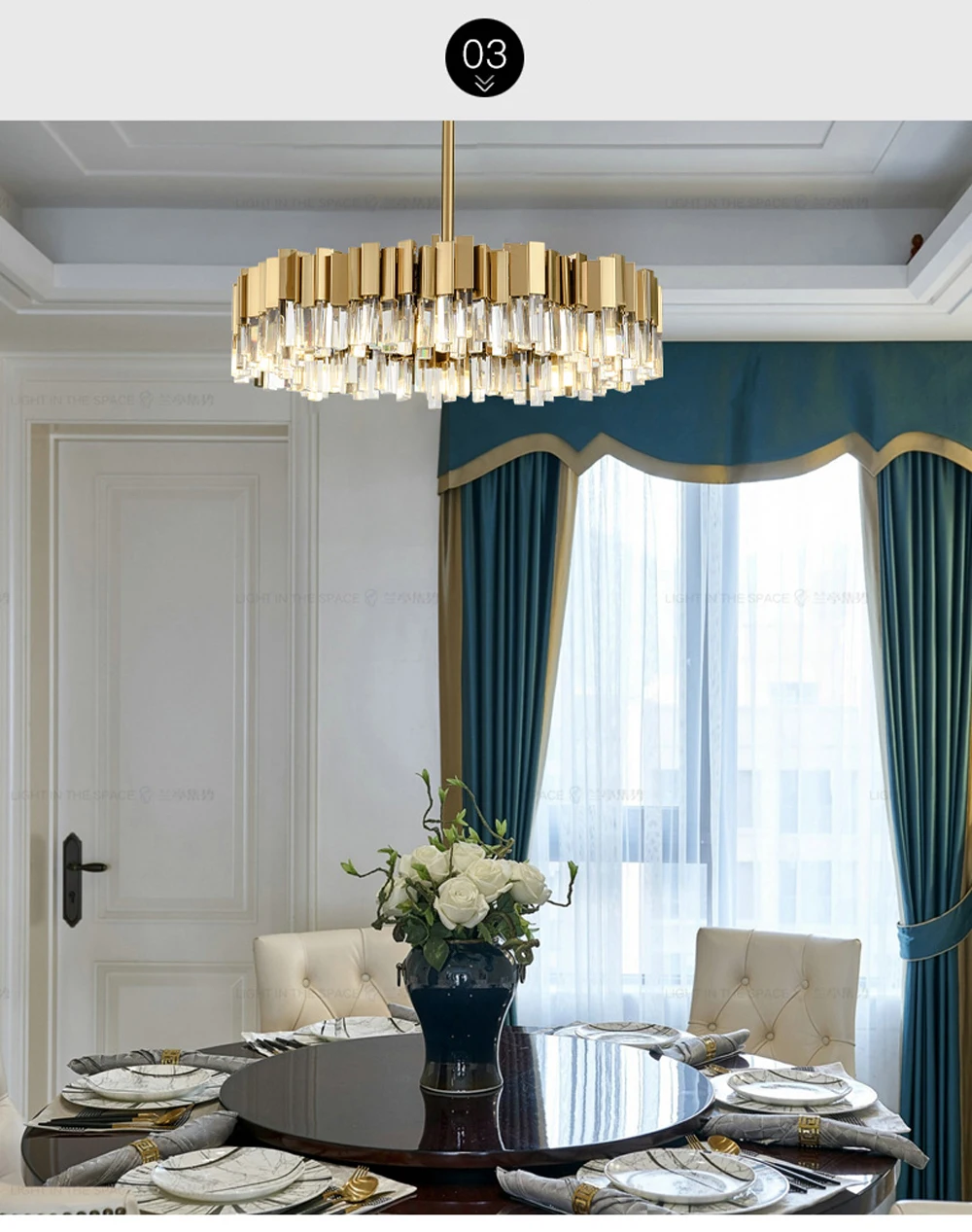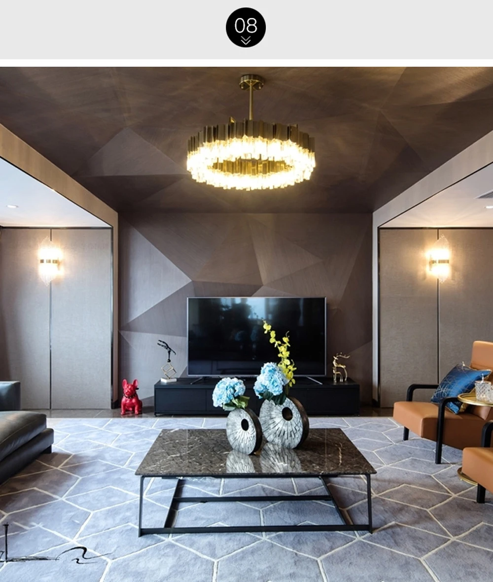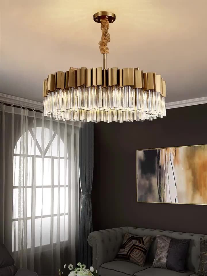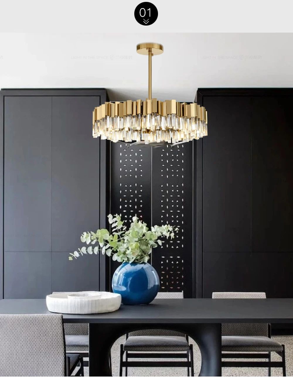 LED Postmodern Golden Stainless Steel Crystal Round Designer Chandelier Lighting Lustre Suspension Luminaire Lampen For Foyer