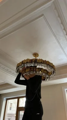 Светодиодный светильник с кристаллами из нержавеющей стали, золотой, круглый...