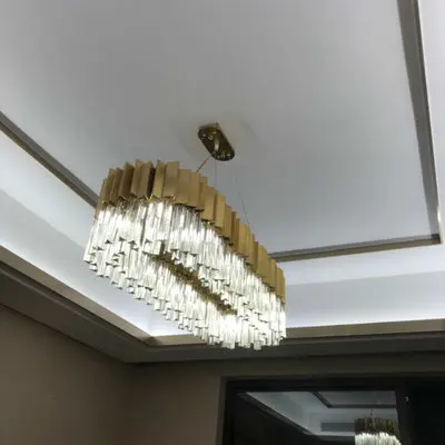Светодиодная постмодерн Золотая Хрустальная круглая люстра из нержавеющей стали освещение люстра Подвесная лампа для фойе