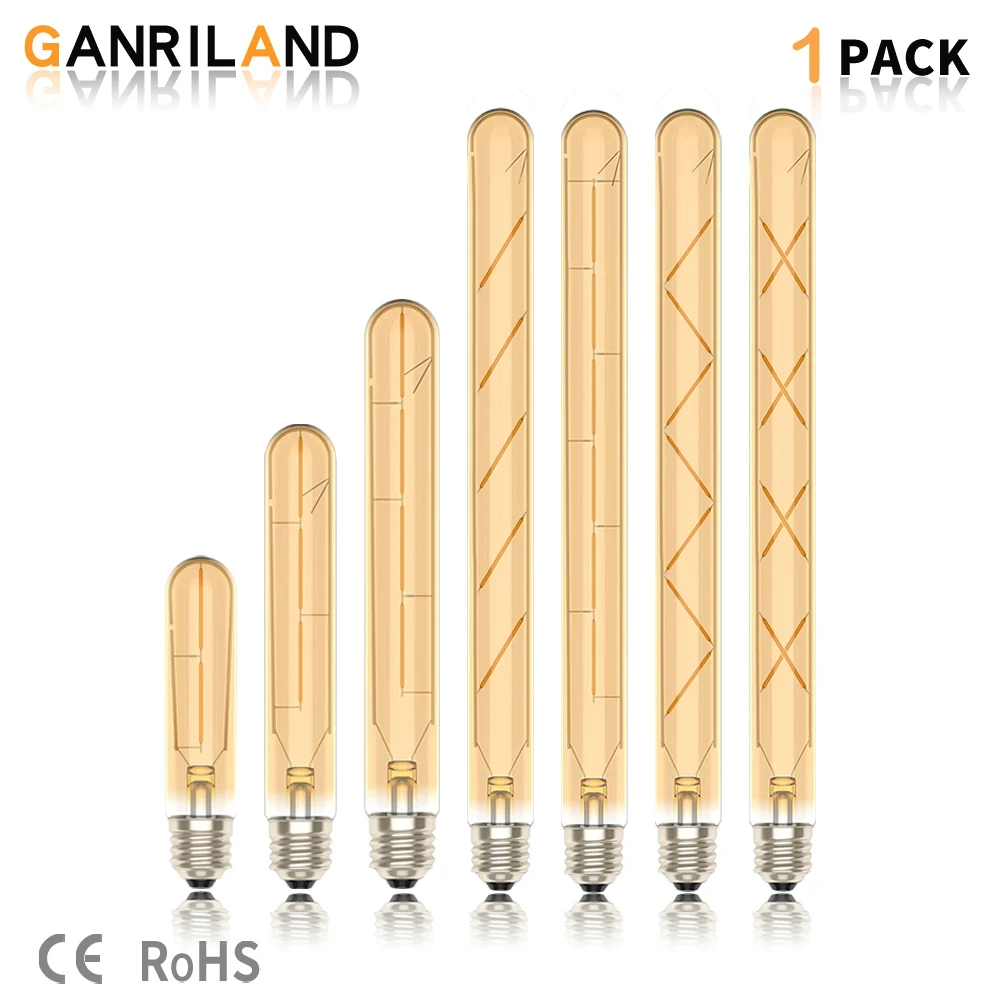 GANRILAND винтажная светодиодная лампа Эдисона с нитью накаливания 2 Вт 3 Вт 4 Вт 5 Вт 6 Вт 8 Вт E27 декоративная длинная трубчатая лампа промышленного освещения ретро лампа с винтовой трубкой
