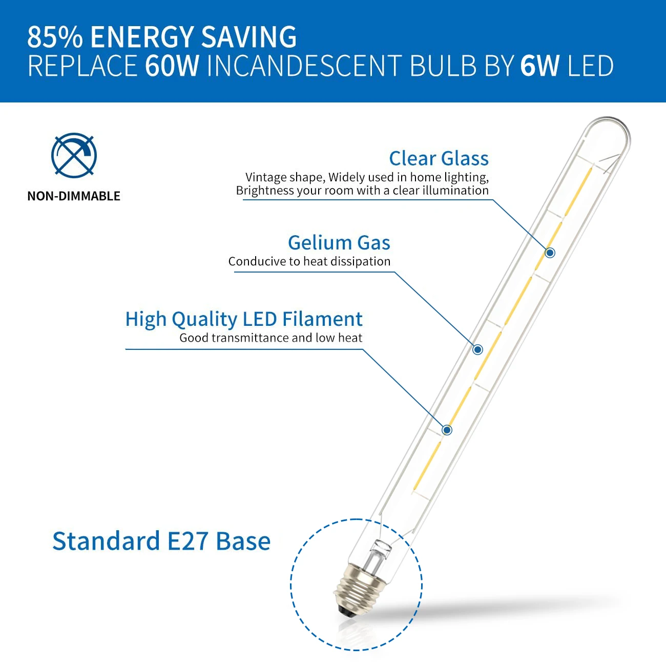- Тип светодиодной лампочки:Трубка