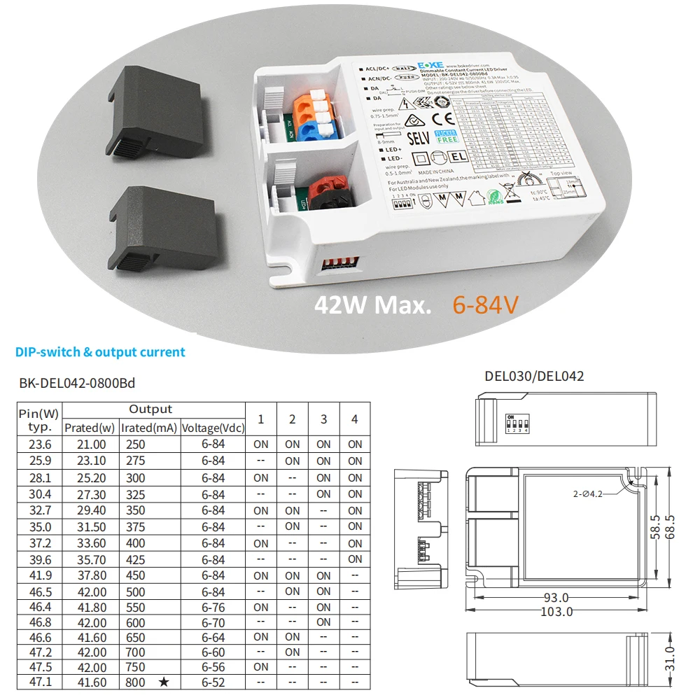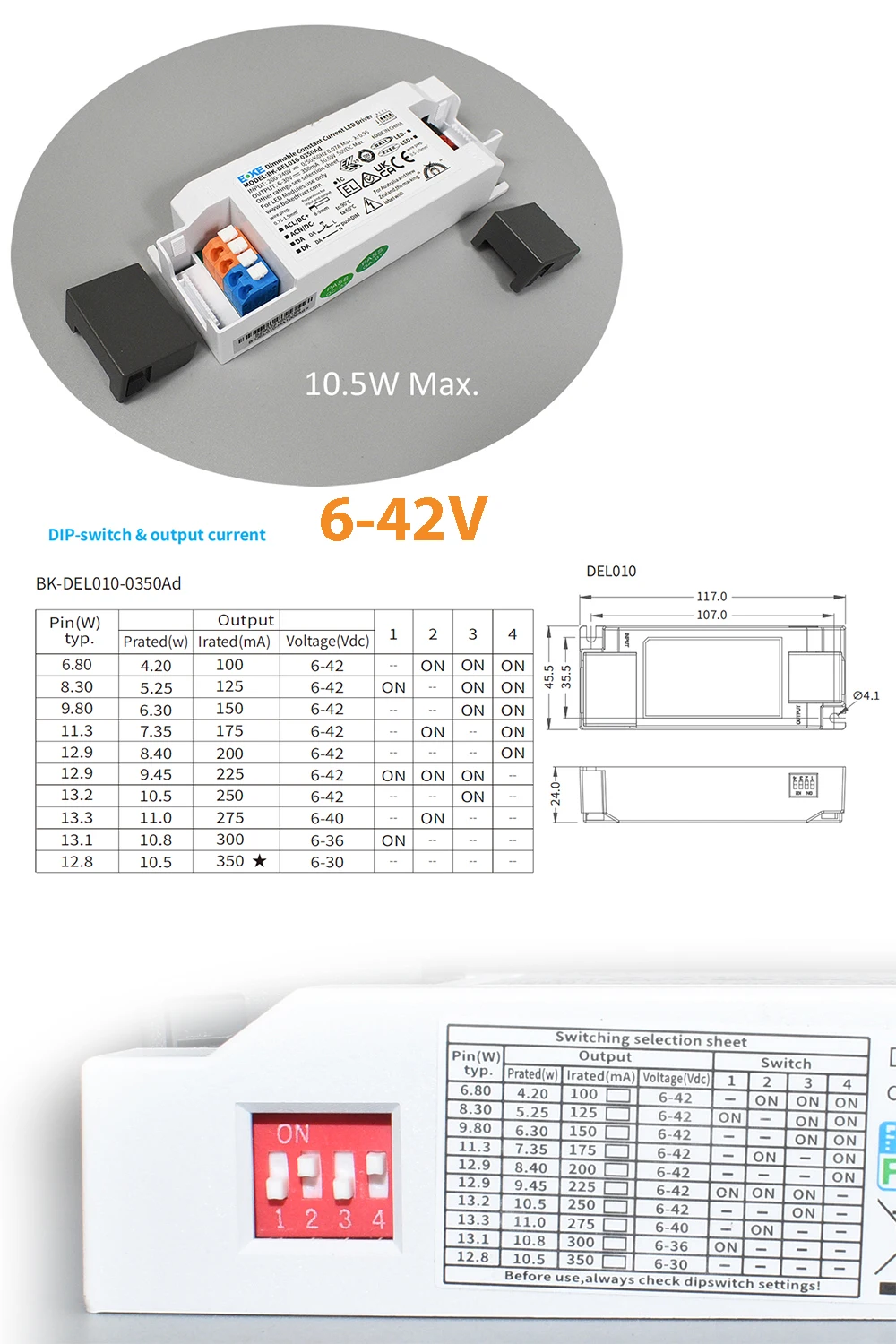 - Output current adjustment:DIP S.W(10 or 16 levels)