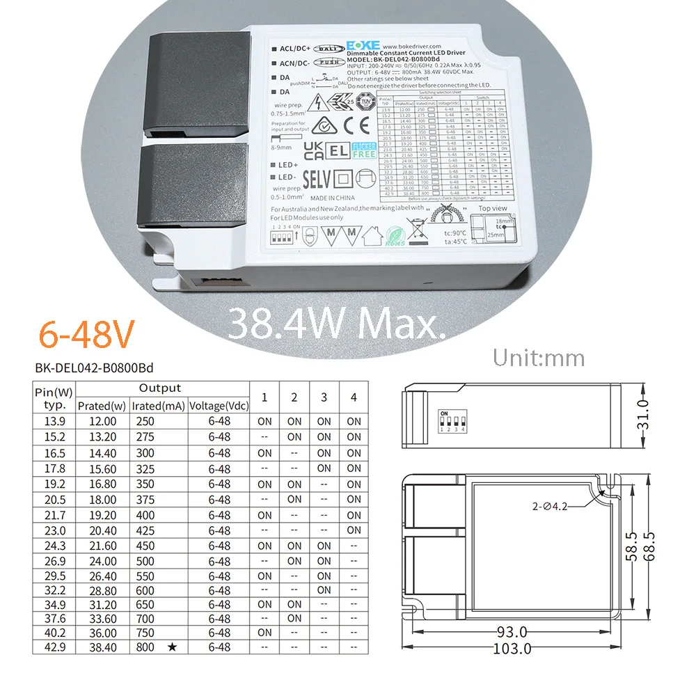 - Выходное напряжение:3-40V DC