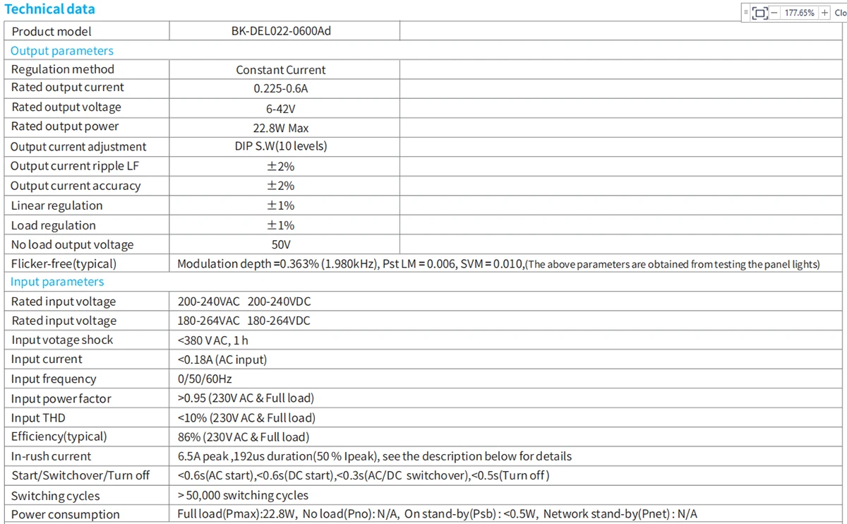 - Характеристики:DALI dimming with currents adjustable