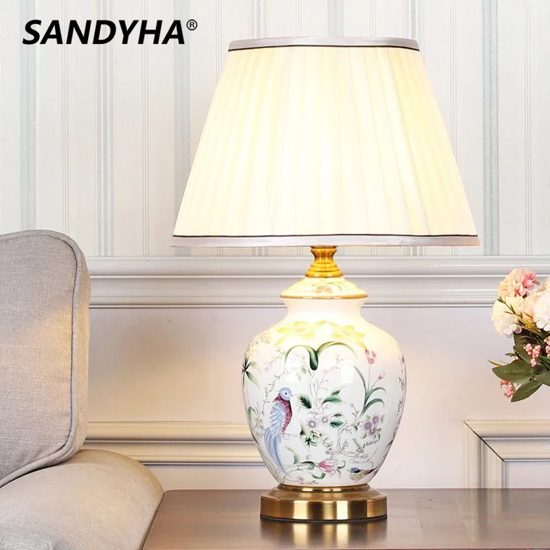 SANDYHA Керамическая Настольная лампа современный минималистский Цветок Птица прикроватный светодиодный настольный светильник для спальни кабинет чтение ночные лампы домашний декор