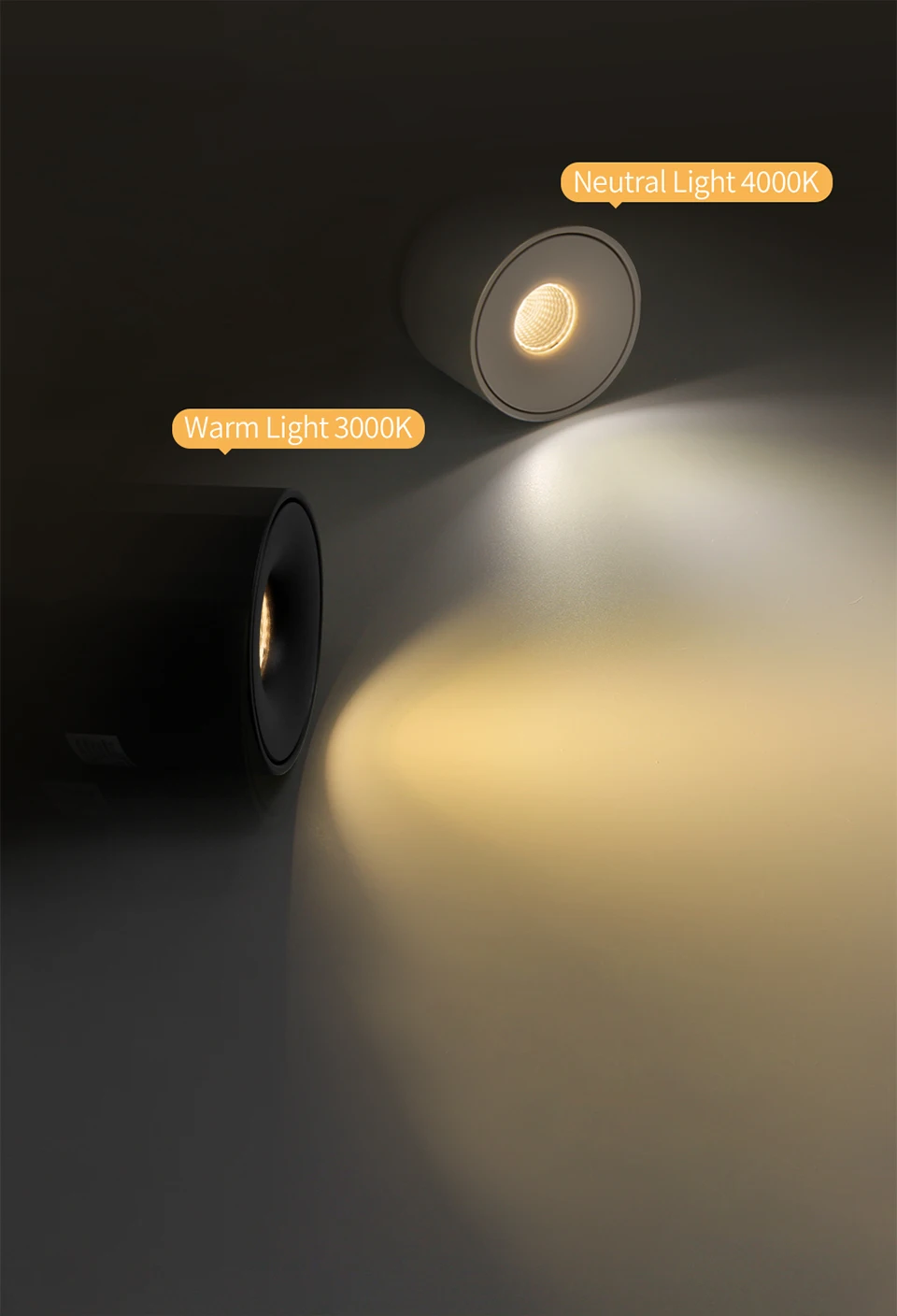Цветовая температура: теплый белый (3000К), натуральный белый (4500К),