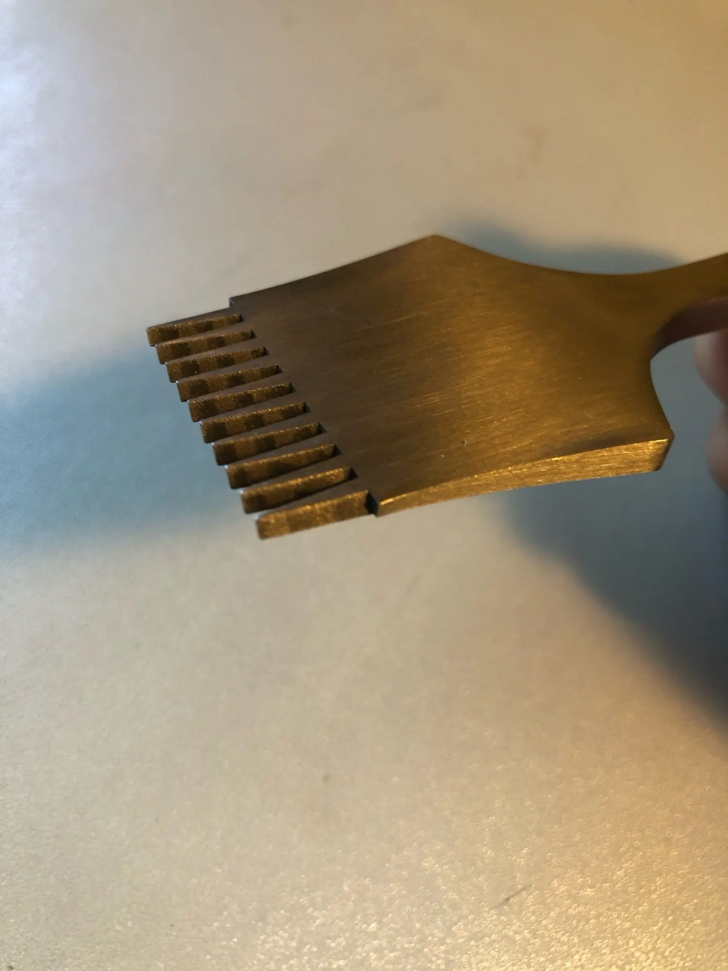 Зубцы утюга очень грубые и застревают в коже. Кроме того, утюги довольно тупые. Они в порядке после долгой заточки и шлифования, но в основном непригодны для использования прямо из коробки. Кроме того, для утюгов 3,38 мм разрезы слишком длинные по сравнению с расстоянием стежка. Это выглядит неудобно, так как стежки выглядят как зигзаги (короткое расстояние между отверстиями, но отверстия слишком большие/длинные).