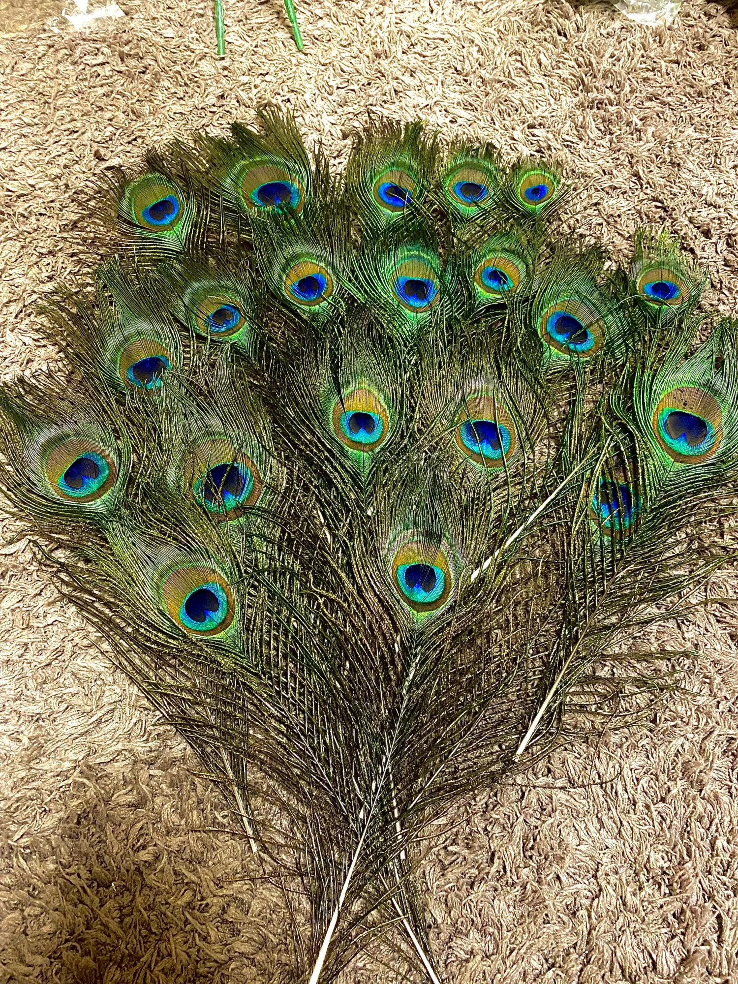 Перья отличные , тяжело собрать в букет рядами а не кучей, так как очень короткие , но выполнимо, смотреться отлично , упаковано так , что по дороге не сломались на фото одна упаковка перьев и 10 зелёных штучек