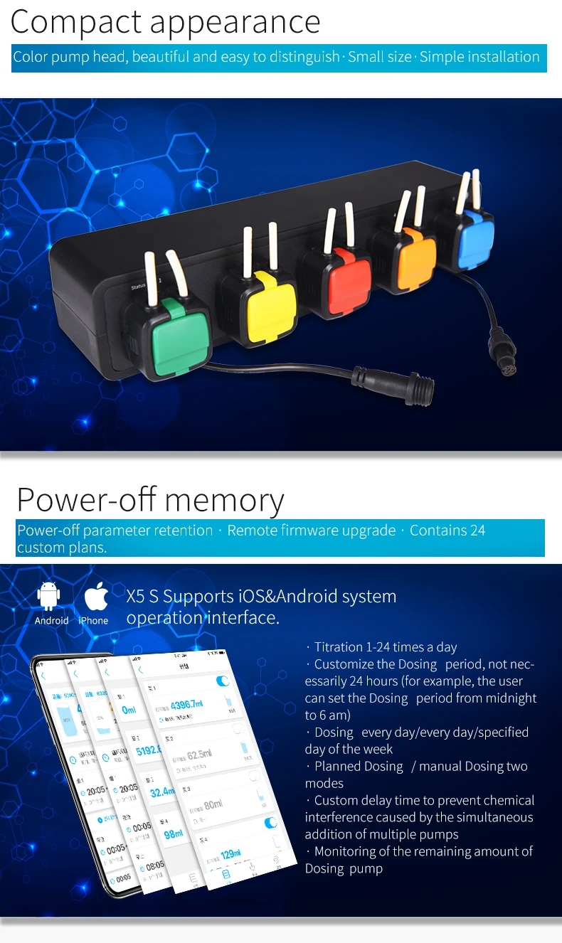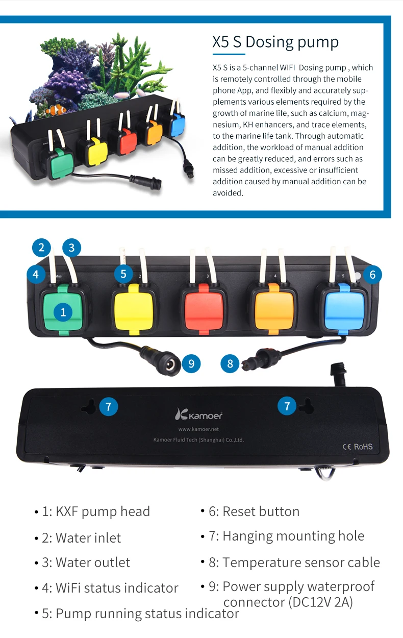 Kamoer удаленный Новый Wi-Fi дозирующий насос с управлением через приложение X5S-самые компактные 5-канальные дозирующие насосы, доступные на рынке.