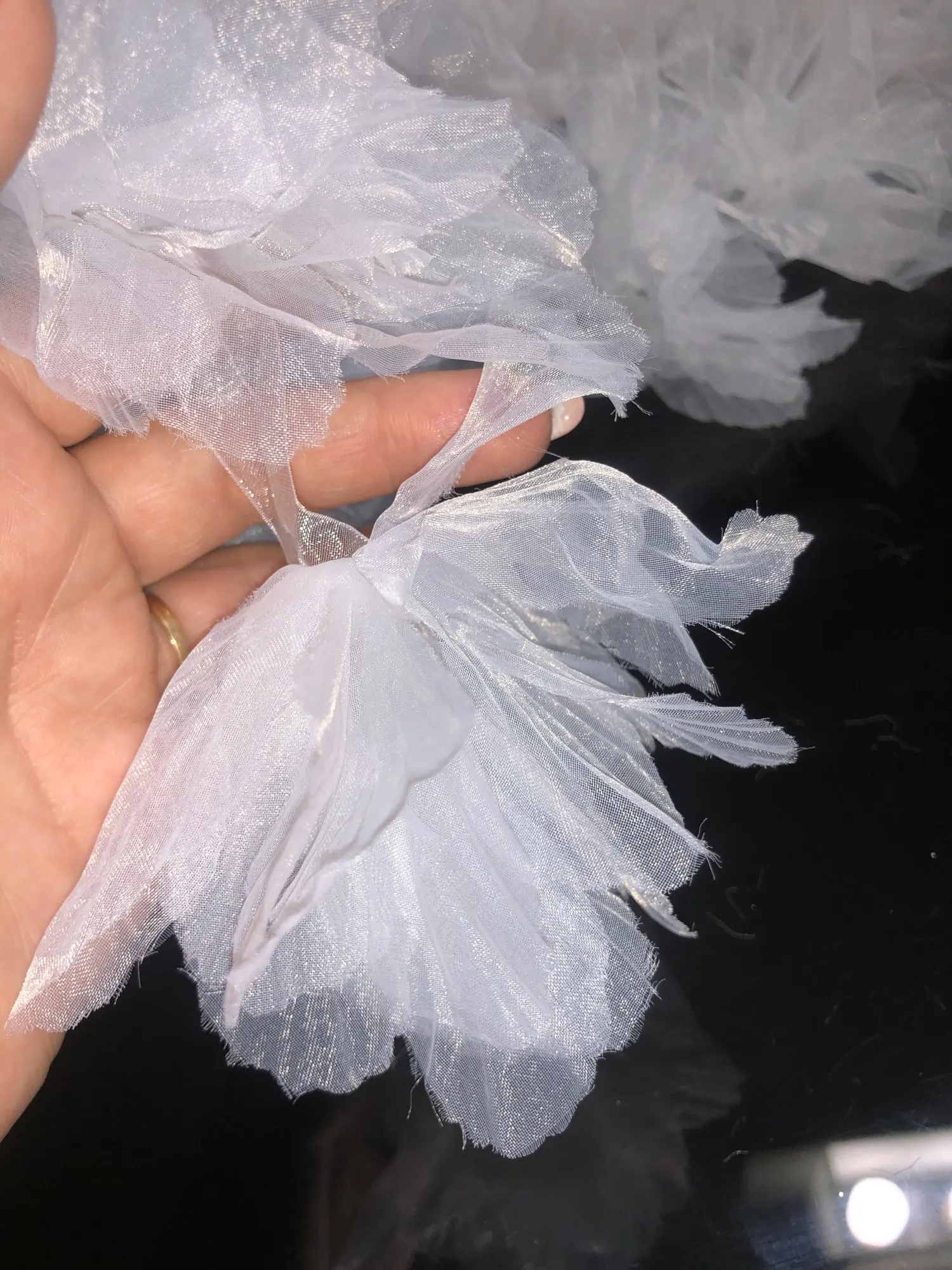 На фото продавця квіти виглядають презентабельними, але отримавши їх зрозуміла, що декорувати одяг ціми квітами не буду. Стрічка на 68 см