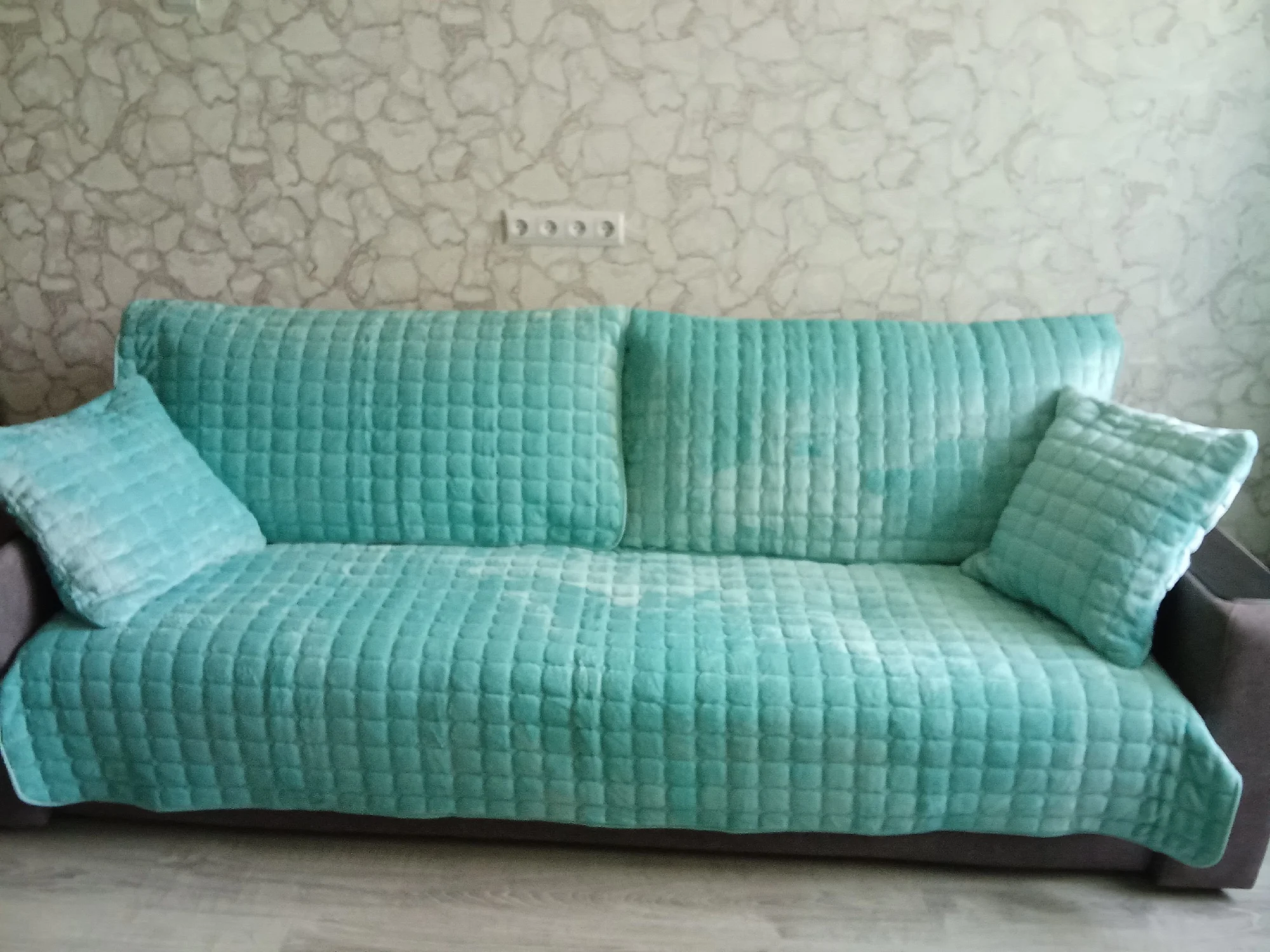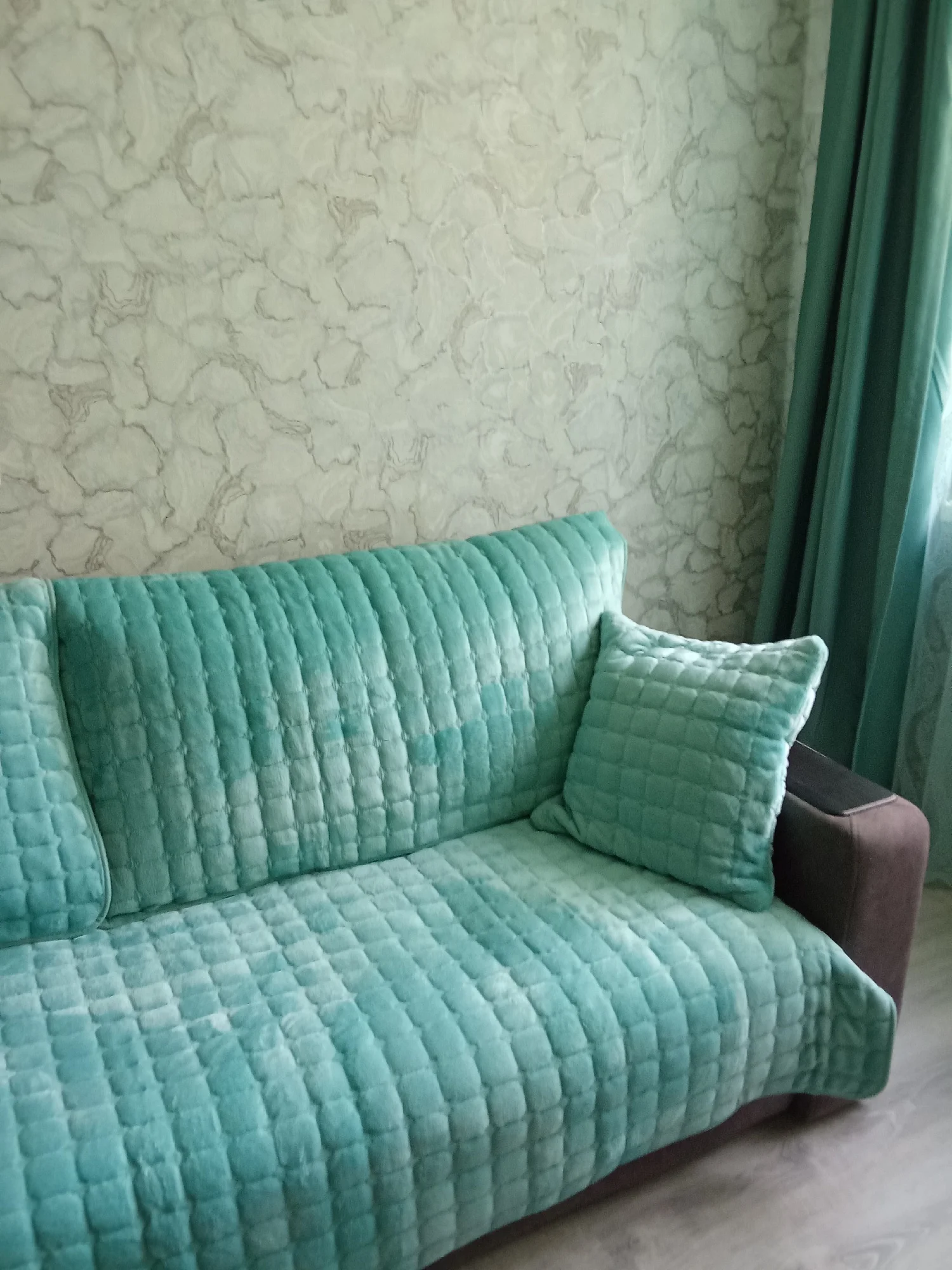 Приятная ворсистая текстура, сшито аккуратно. Цвет нежная мята, не голубой, не зеленый (цветопередача на телефоне неточная). Диванная подушка 100*60. Сидение дивана 200*100. Декоративные наволочки полноразмерные. Подошло хорошо.RU s. 29 сентября 2024