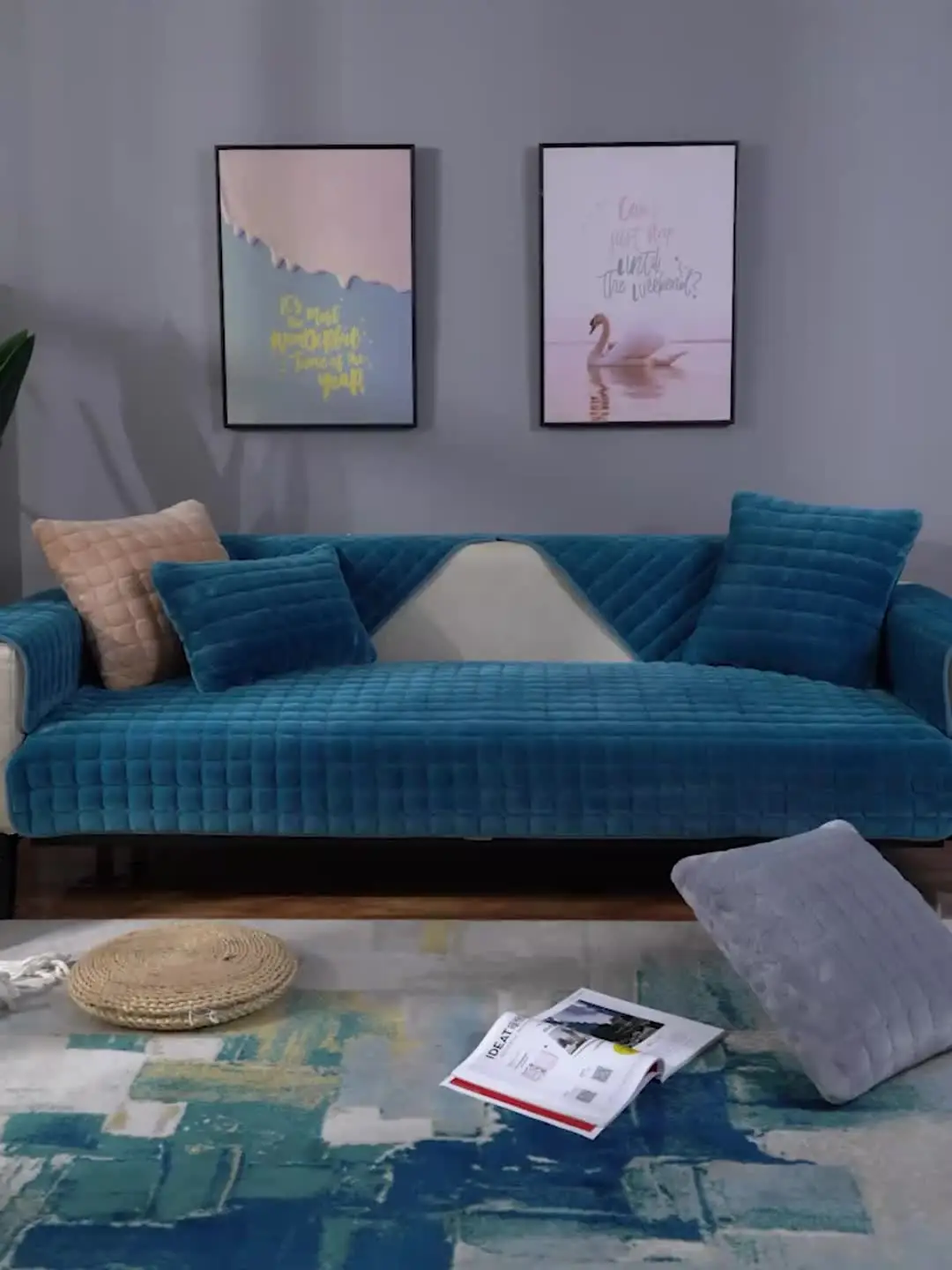 Velvet Sofa Cover Universal Plaid Plush Non-Slip Thickened Living Room Sofa...