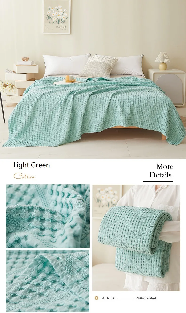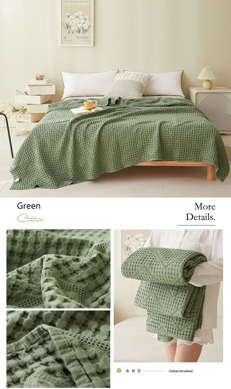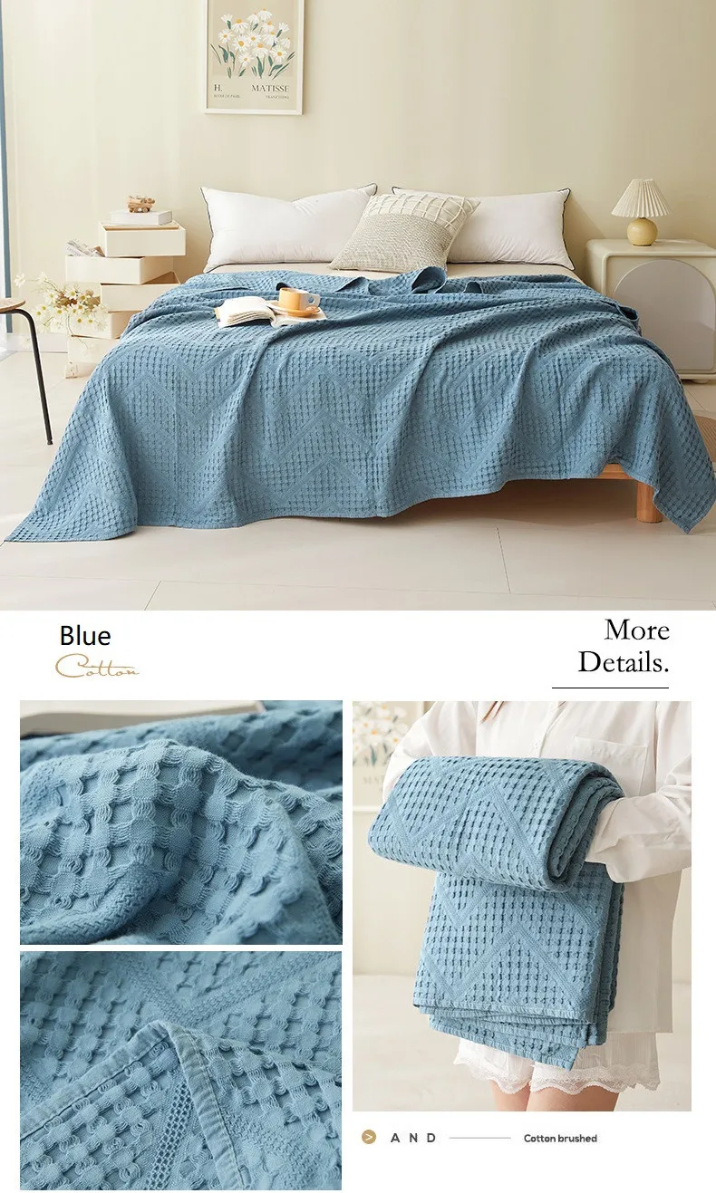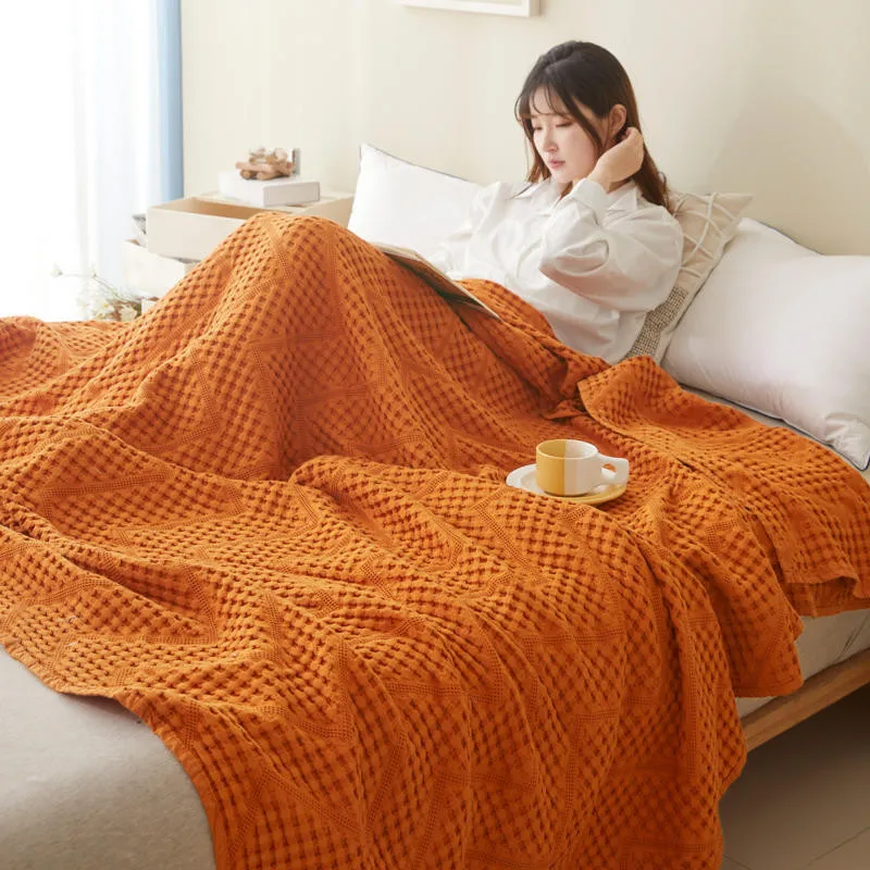 Waffle Muslin Cotton Car Nap Couch Sofa Soft Home Summer Bedspreads Blankets...