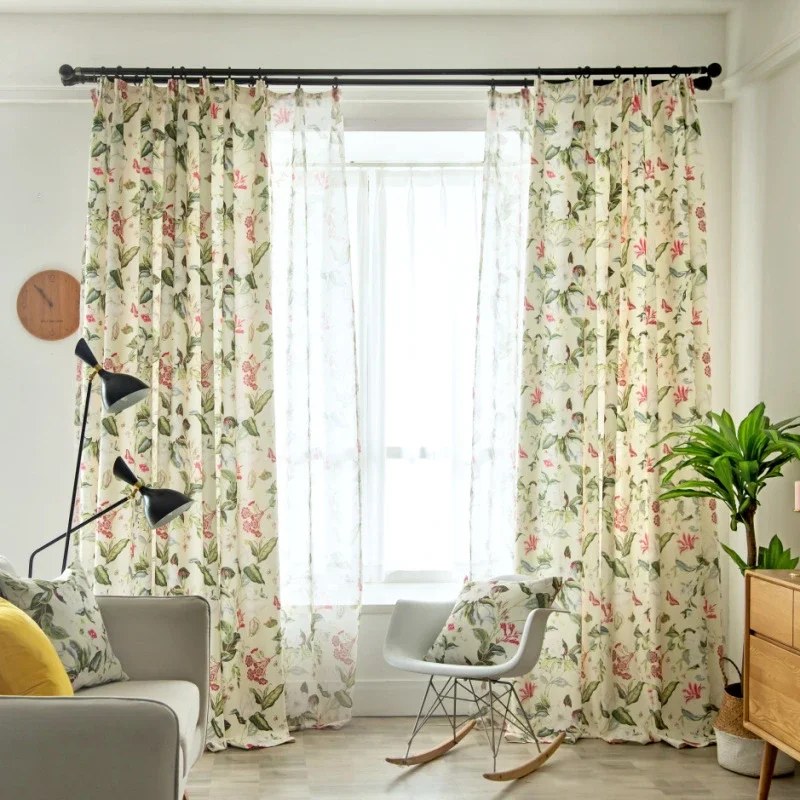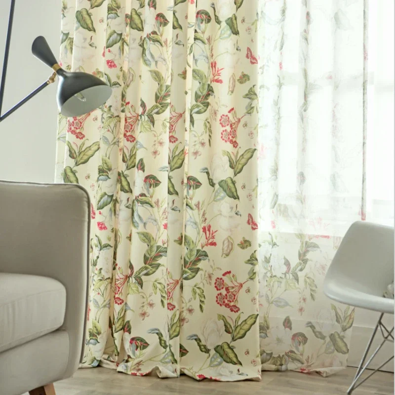 American Pastoral Floral Blackout Curtains For Living Room Bedroom Printed...