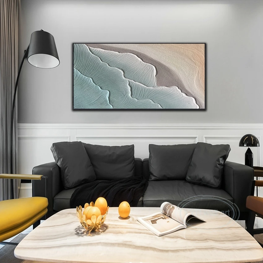 Ocean Wave Beach Abstract Art Pure Hand drawn Oil Painting Home Decoration ...