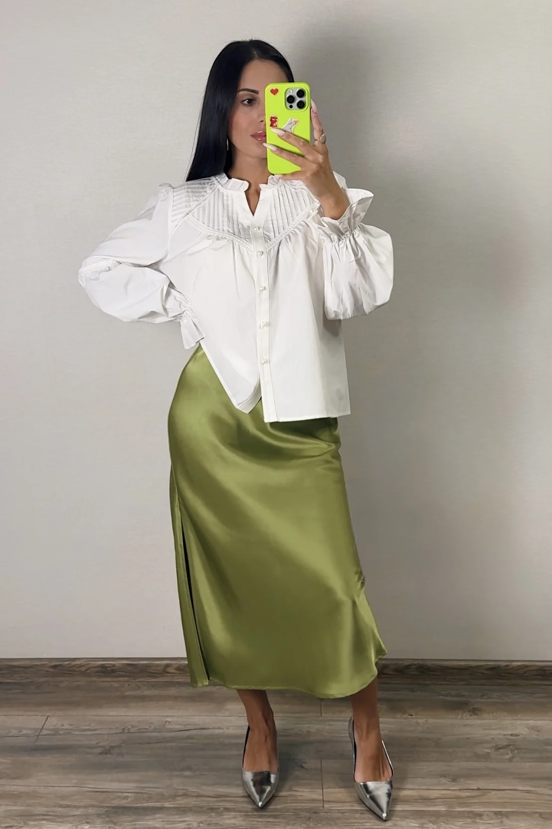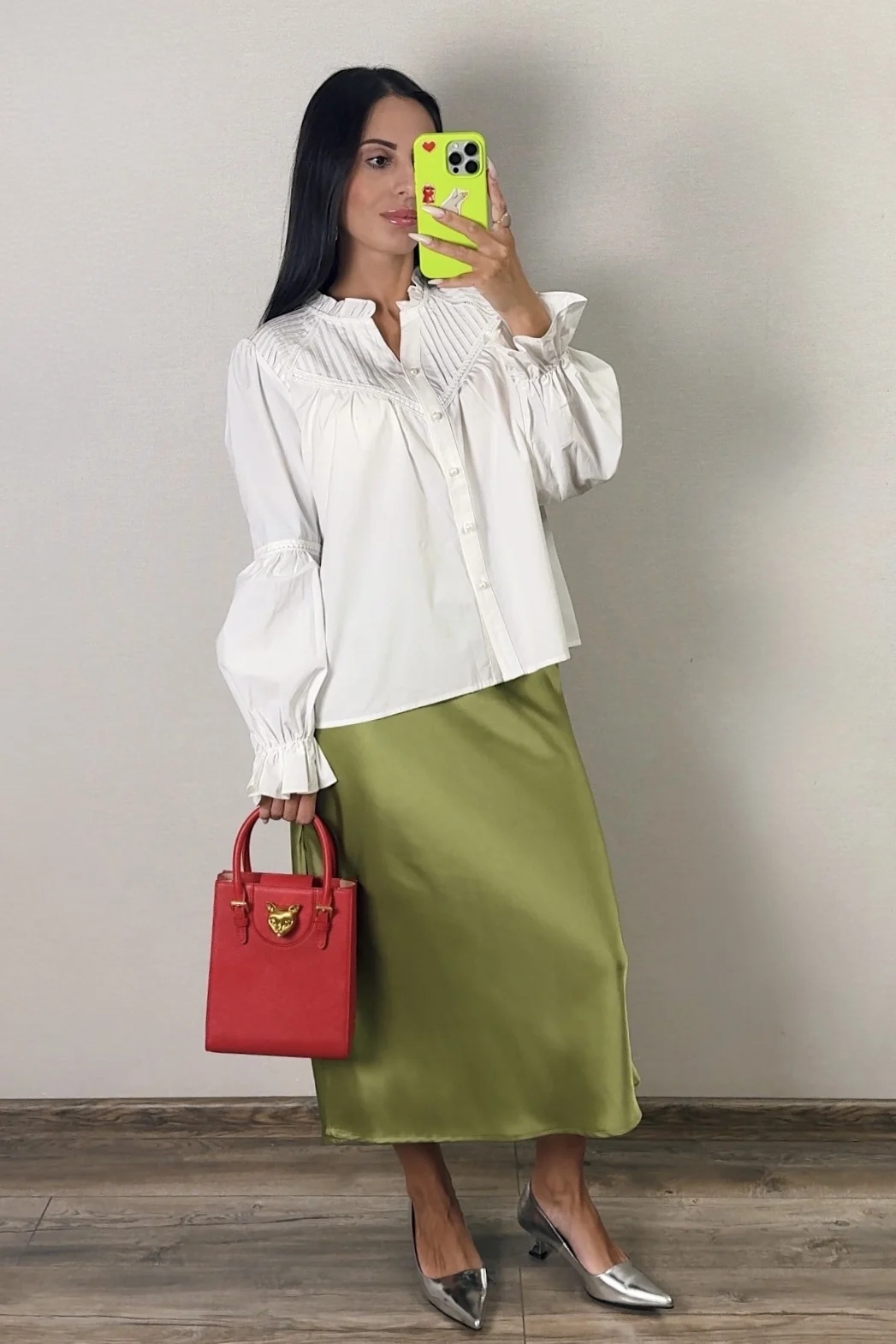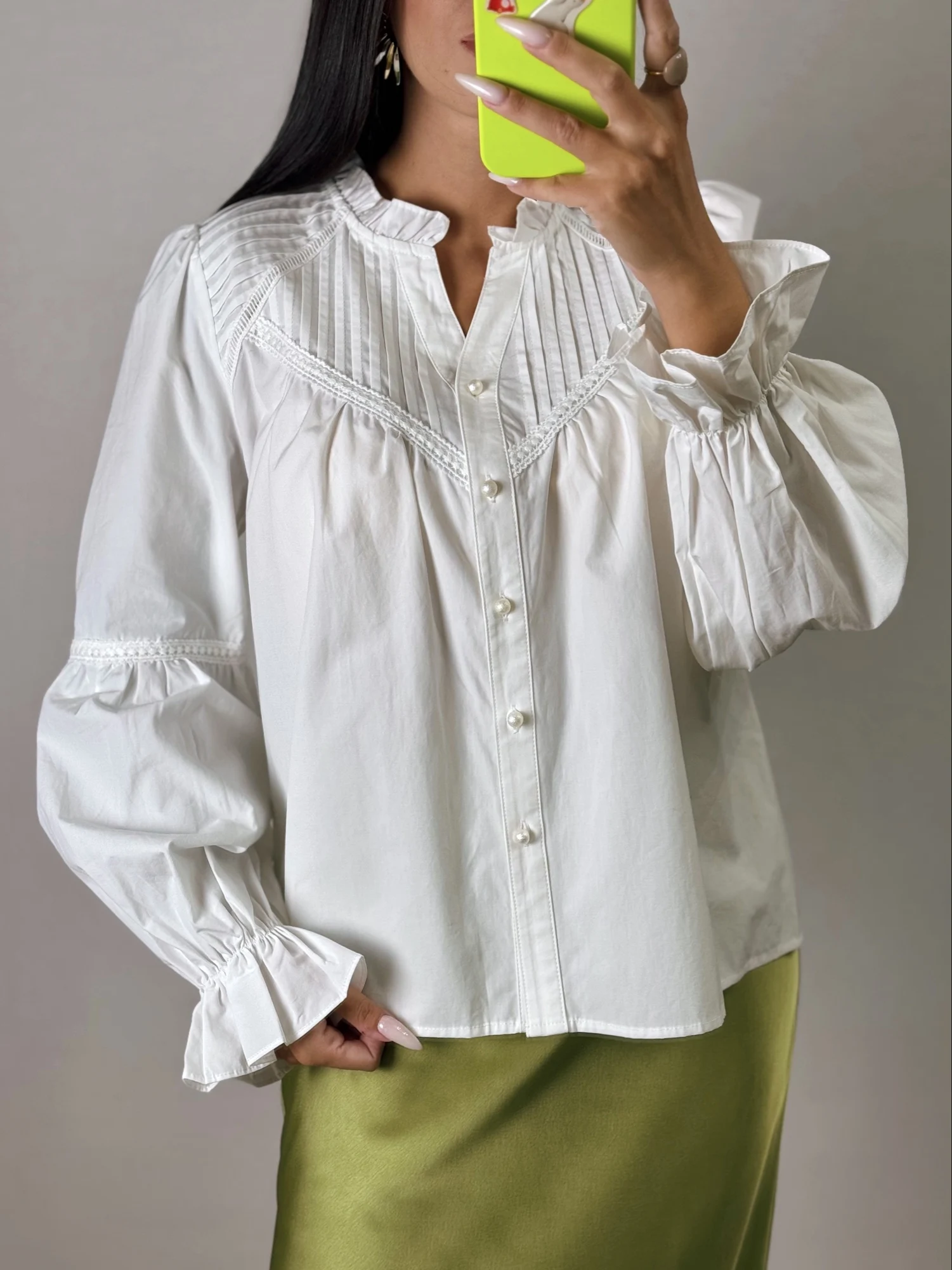 MISHOW French Organ Pleated V-neck Shirt 2024 Spring Petal Patchwork Ruffle...