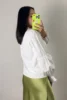 The blouse made of interesting textile. After the washing it was like a piece of soft plastic material. Not too soft. When it dry, it is very comfortable and beautiful. Pictures took after washing. I recommend the seller.Inga M. 20 марта 2025