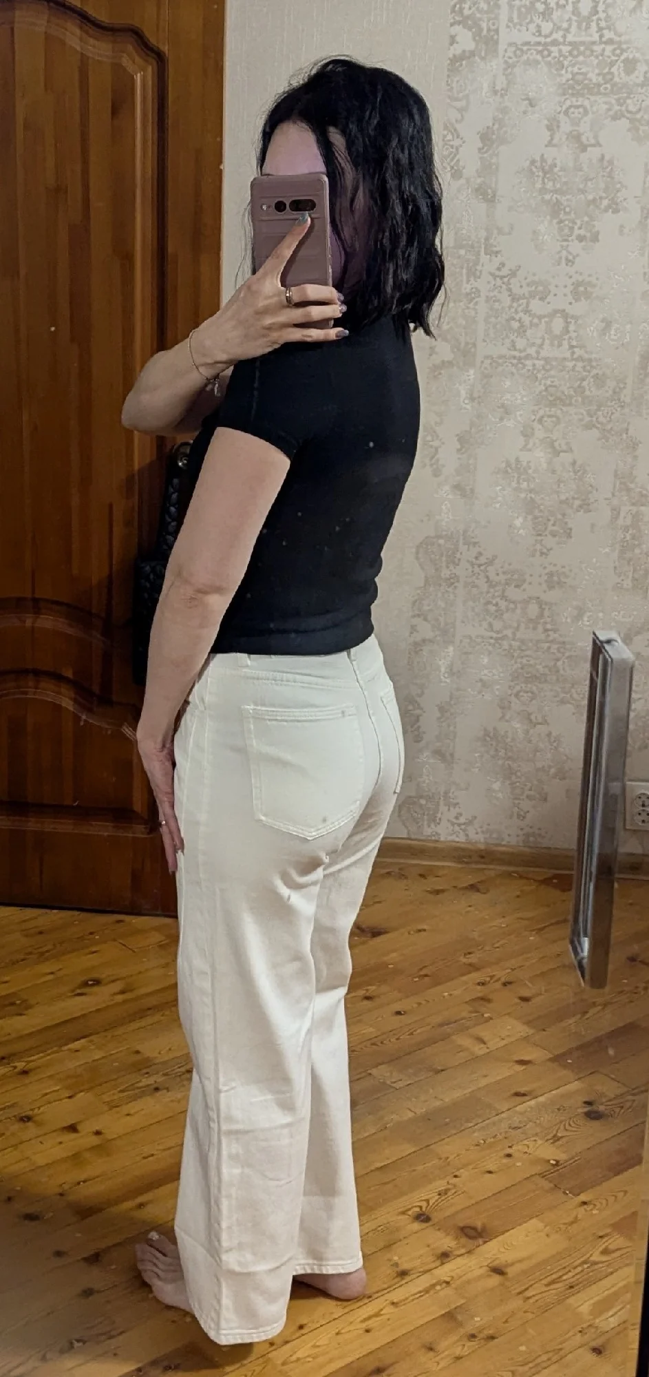 Джинсы в целом понравились. Джинса мягкая. Продавец отзывчивый, на вопросы отвечает. По рекомендации продавца взяла р-р L на ОТ 78 см, ОБ 96 см. Но в талии плотно, хотелось бы посвободнее. По бёдрам садятся плотно. Замеры джинс: длина по внутренней стороне 76 см, на рост 164 даже укорачивать не надо. Ширина штанины 26 см, ширина по бёдрам где-то 54 см, в талии намерила 36 см. Замеры примерные. А так хорошие штаны.RU s. 26 июля 2025