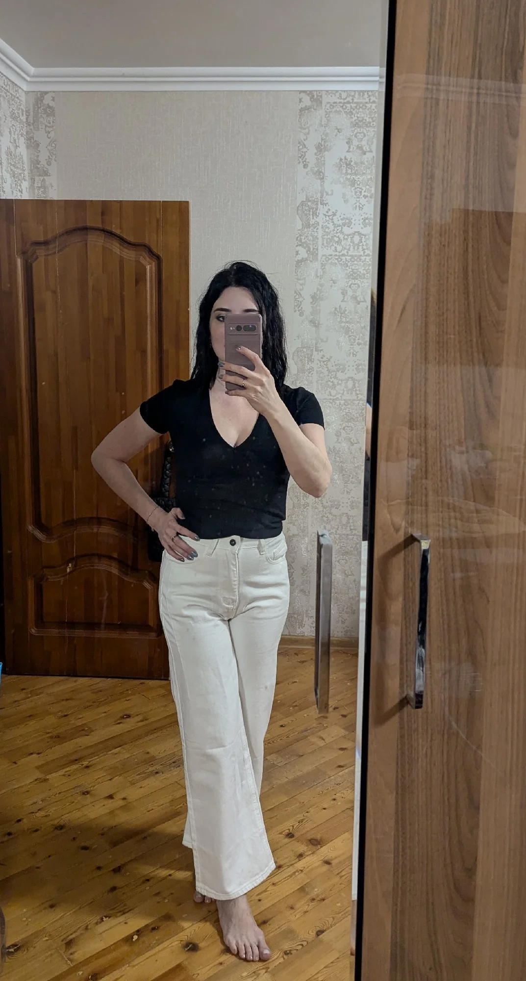 Хорошие джинсы,цвет ожидала молочный,но они прям совсем белые.Мне понравились,на рост 168 длина нормальная,в самый раз.На 99-73-99 М в талии впритык, кто любит посвободнее,лучше следующий размер взять.Но мне нравится,когда джинсы достаточно плотные и не висят по фигуре.