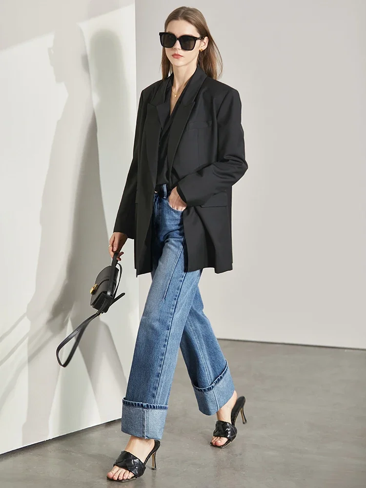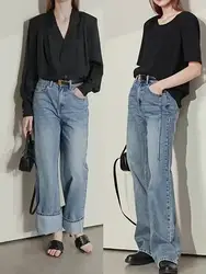 Amii Minimalism Women Jeans Spring Vintage Denim Pants Loose Wide Leg Pants...
