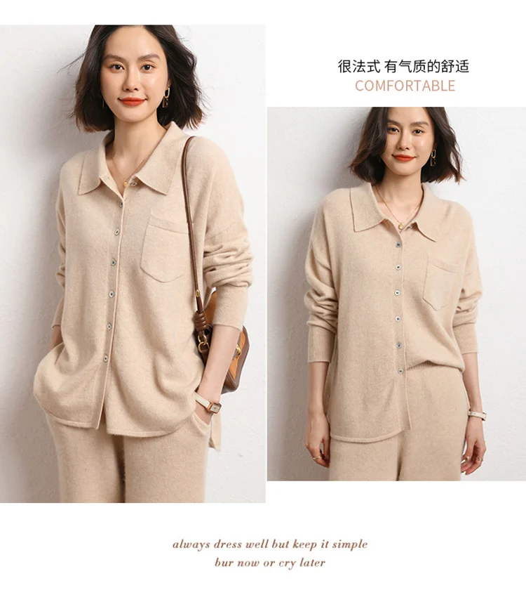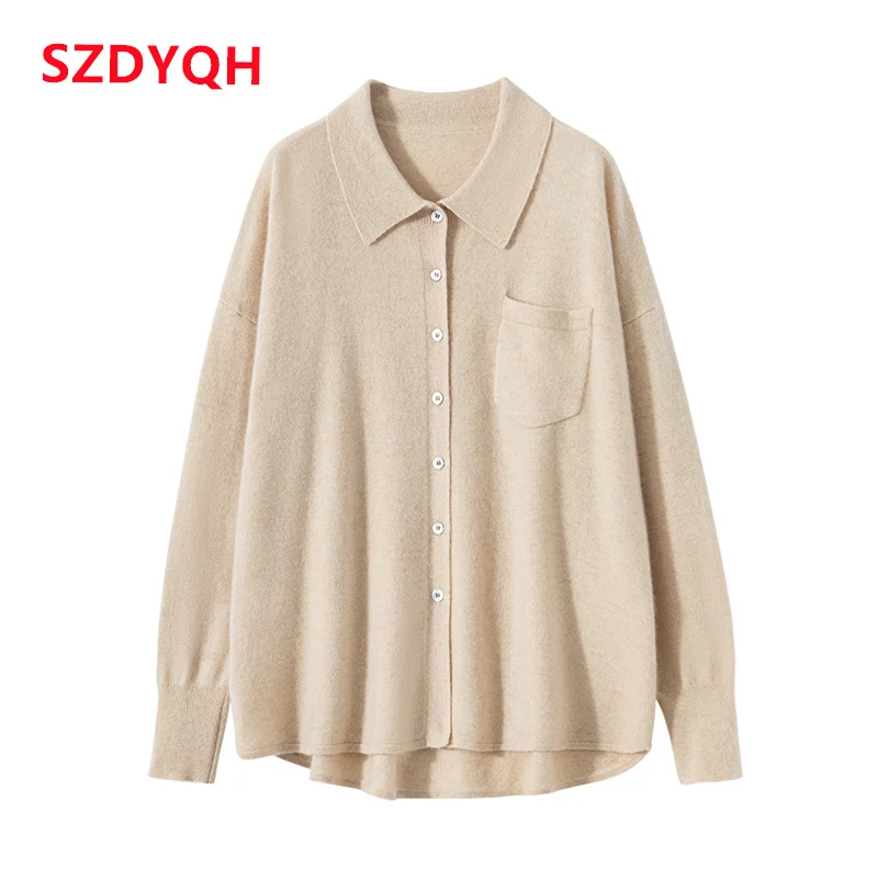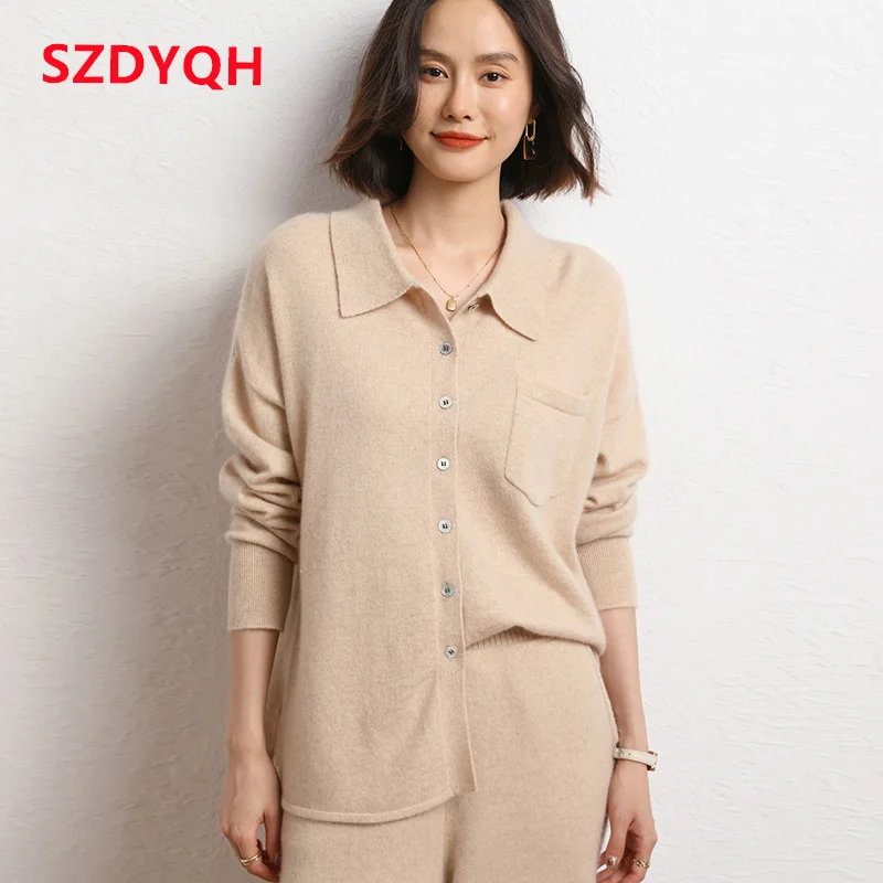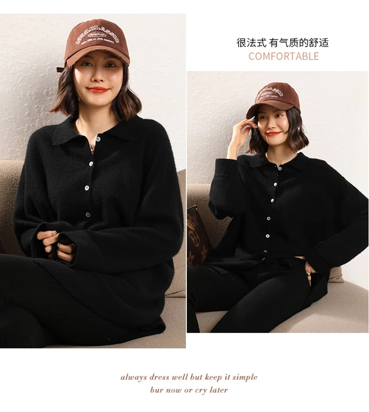 Autumn Women's Cardigan 100% Cashmere Knitted Sweater Chic Tops Cashmere Coat...