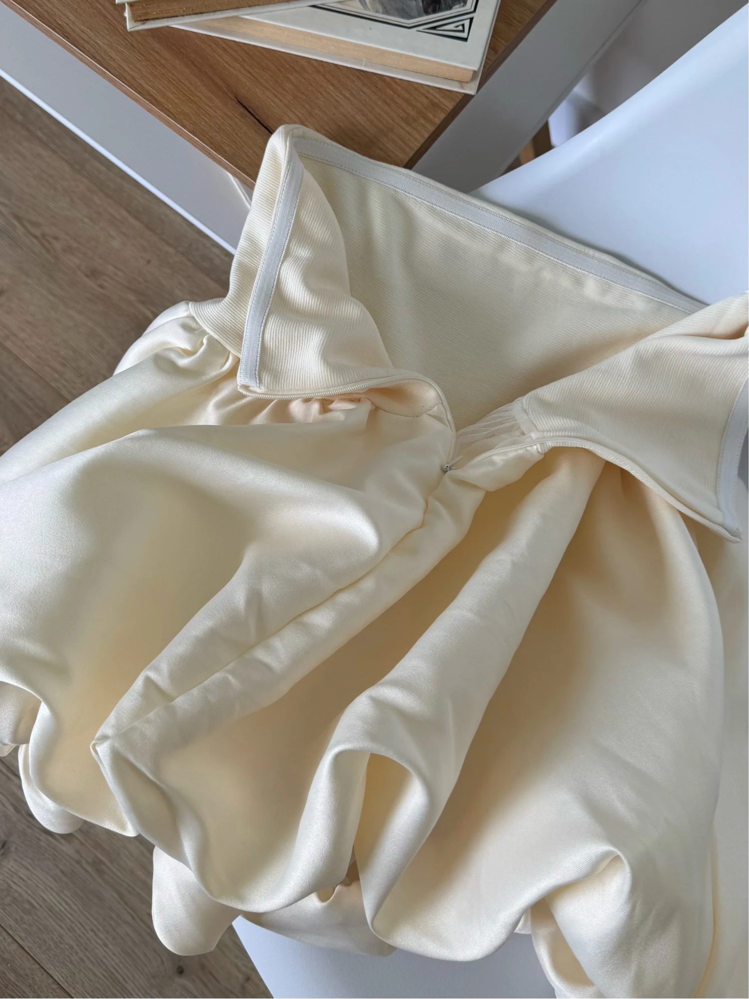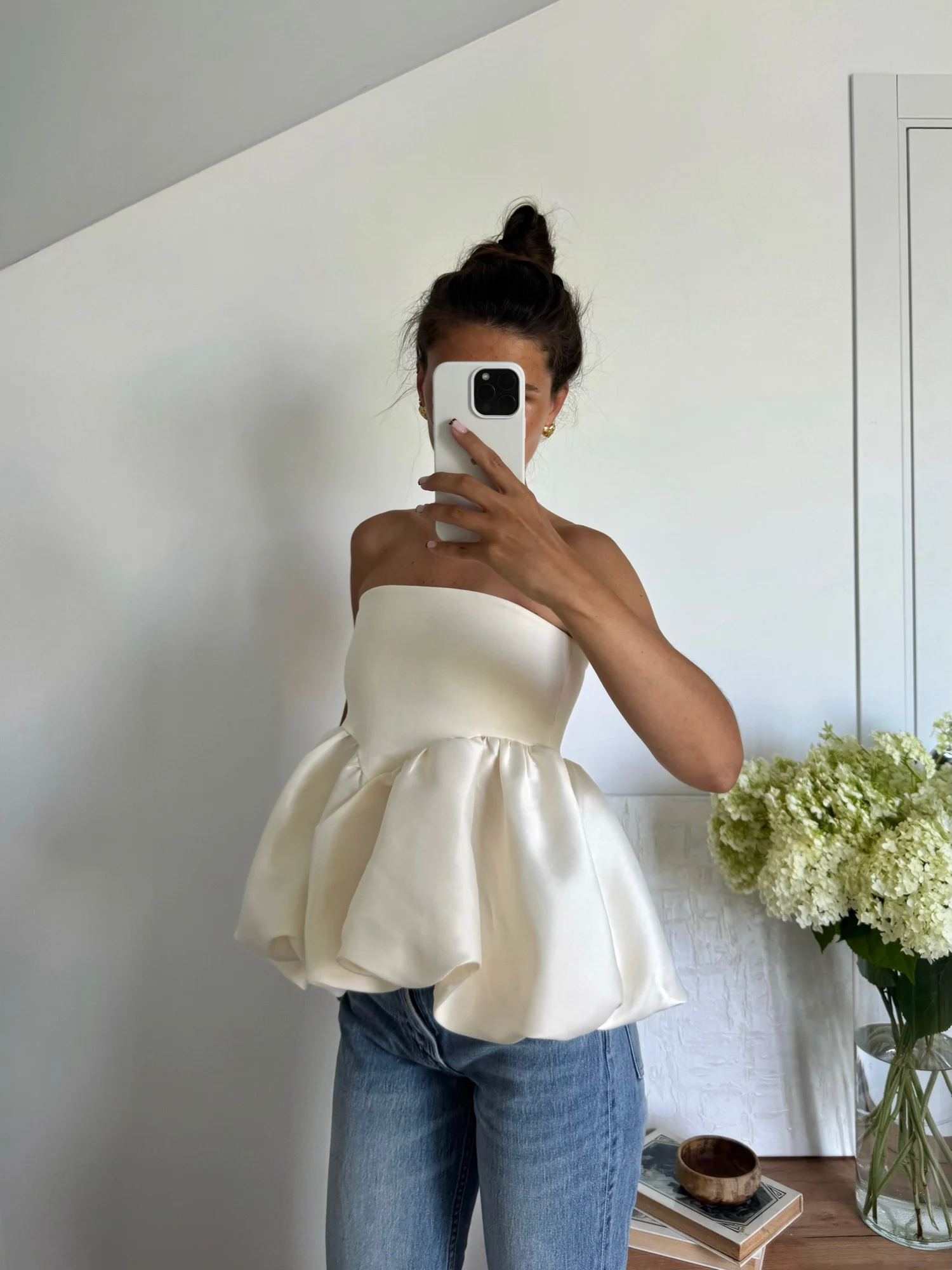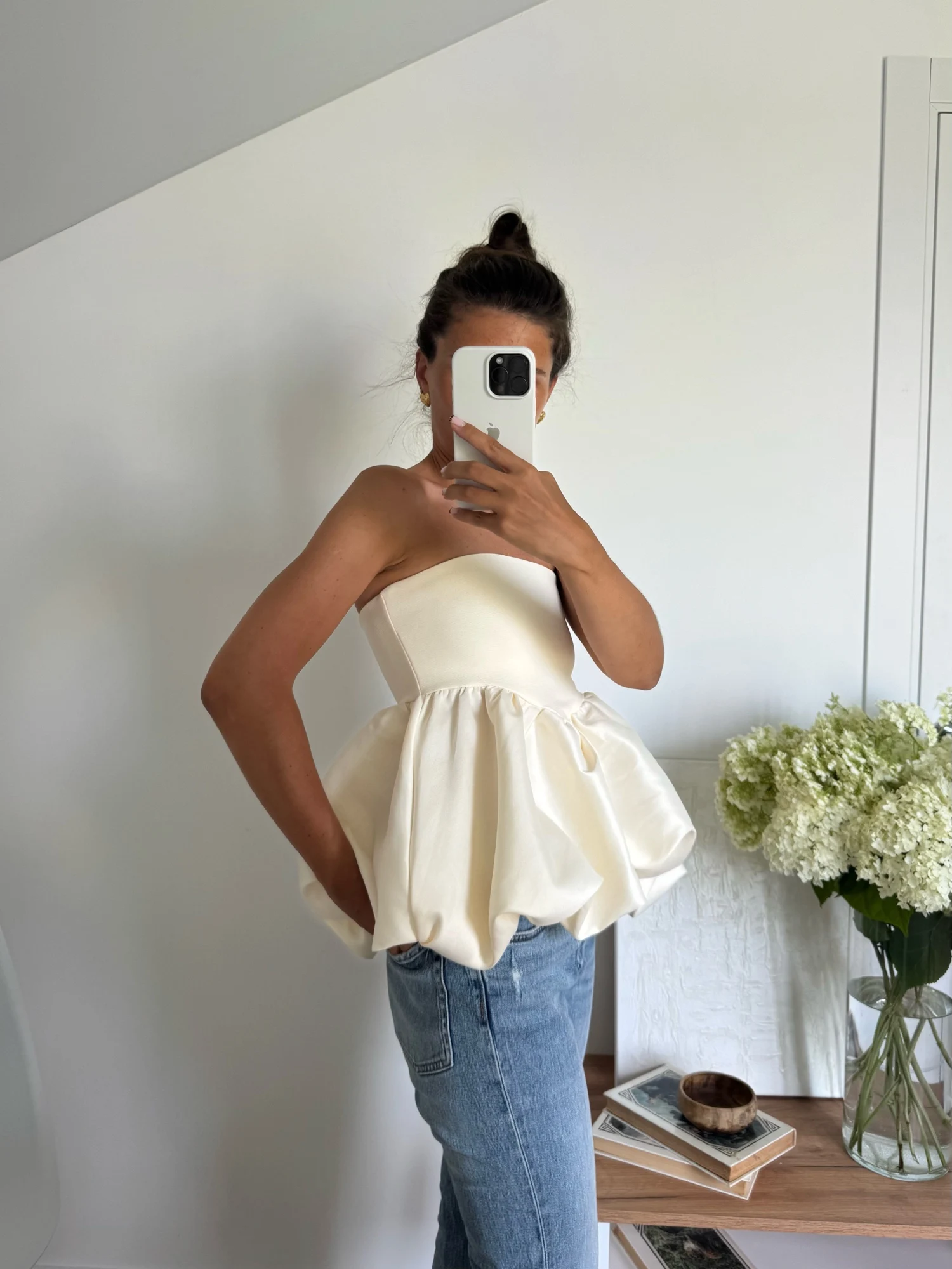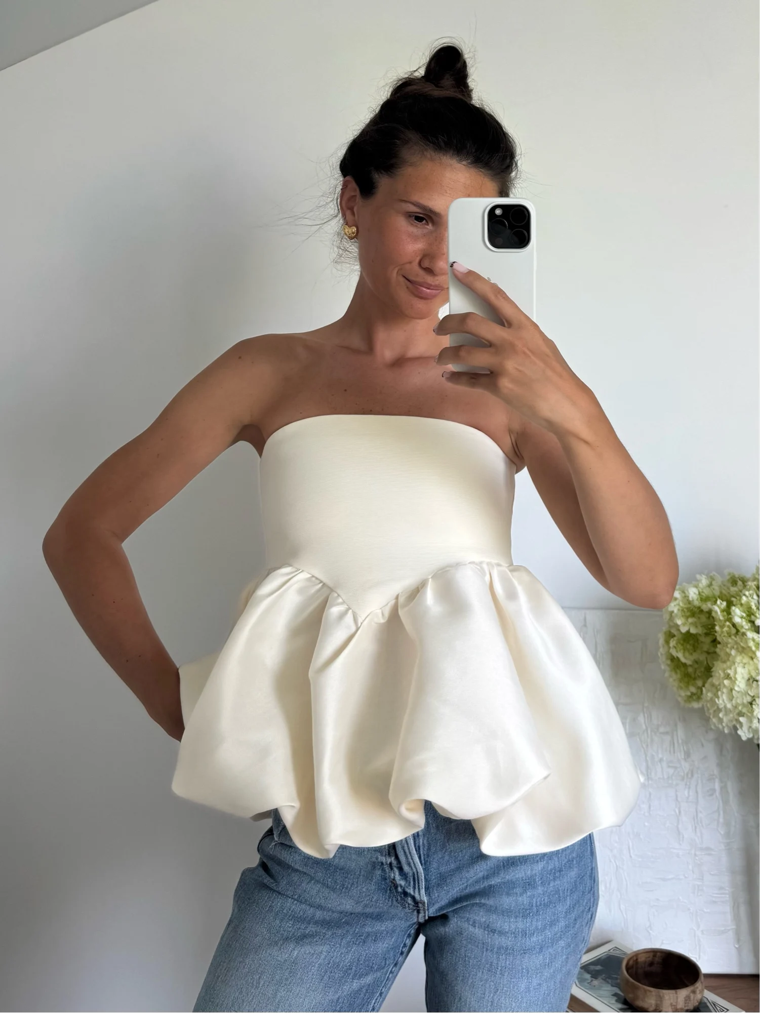 Невероятной красоты топ! Идеально сел, материал плотный, верх трикотажный, тянется хорошо. Вниз не сползает. По верху идет силиконовая лента, на спинке молния. Подумала, что в целом можно даже как юбку попробовать носить (последнее фото). ОГ в спокойном состоянии 66. Рекомендую!