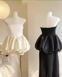 Women's Elegant Strapless Sleeveless A Line Tank Top Lady Summer Streetwear...