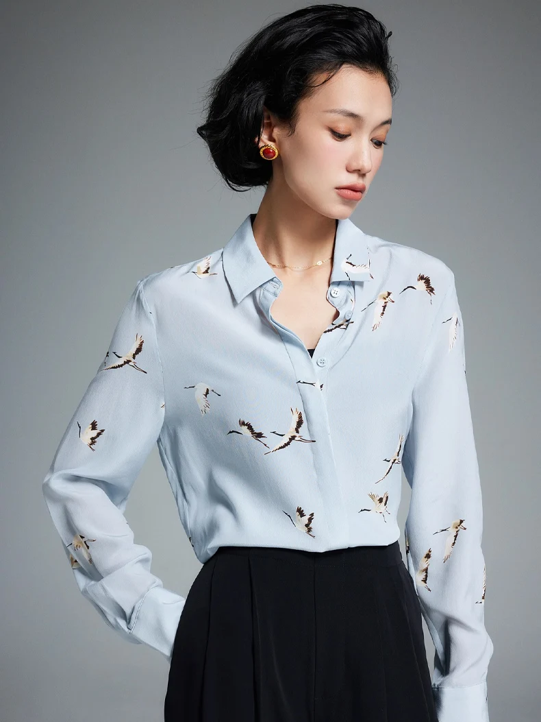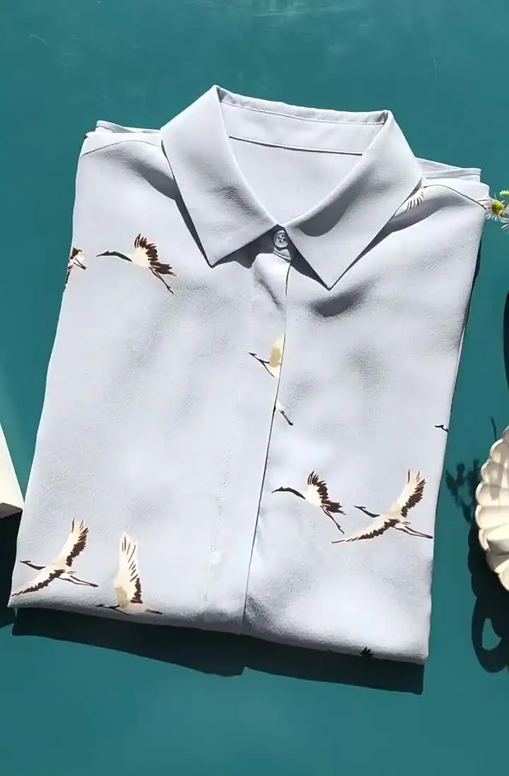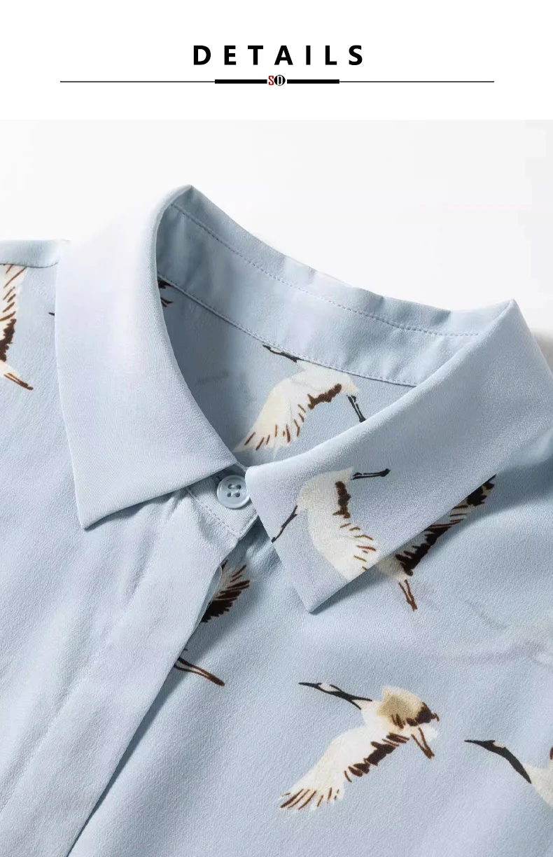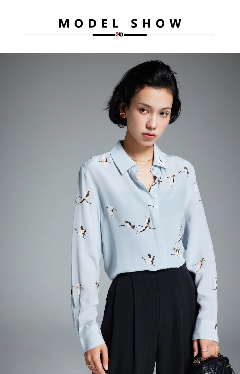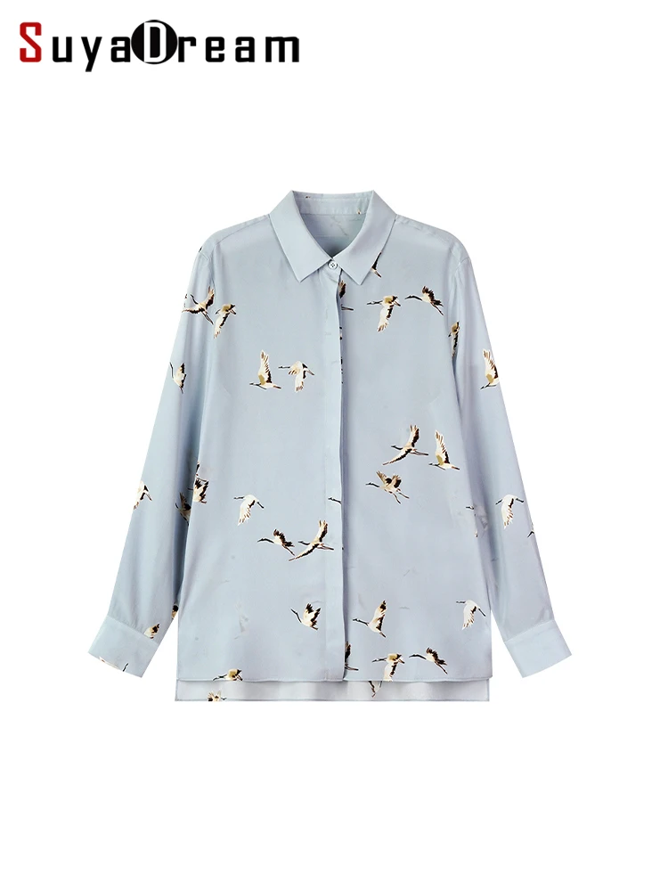 SuyaDream, Woman Printed Shirts, 100%Silk Crepe de chine, Turn Down Collar,...