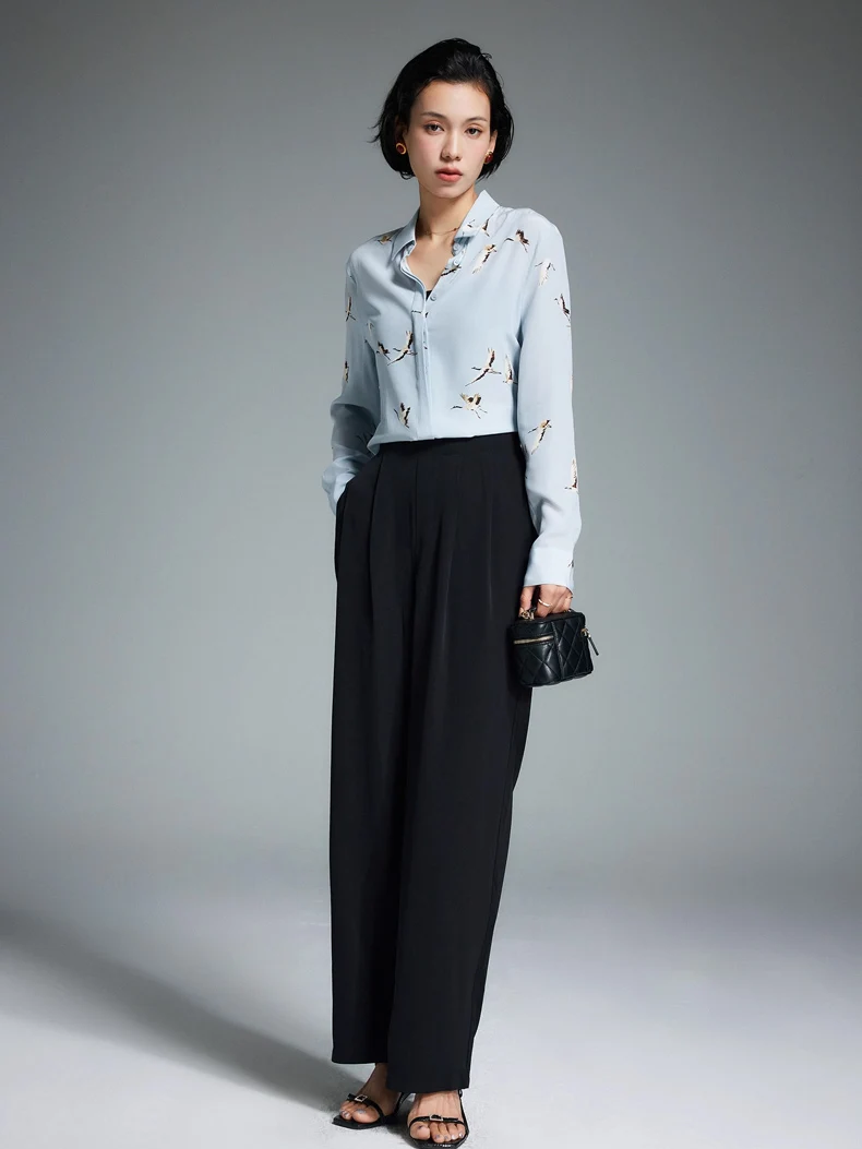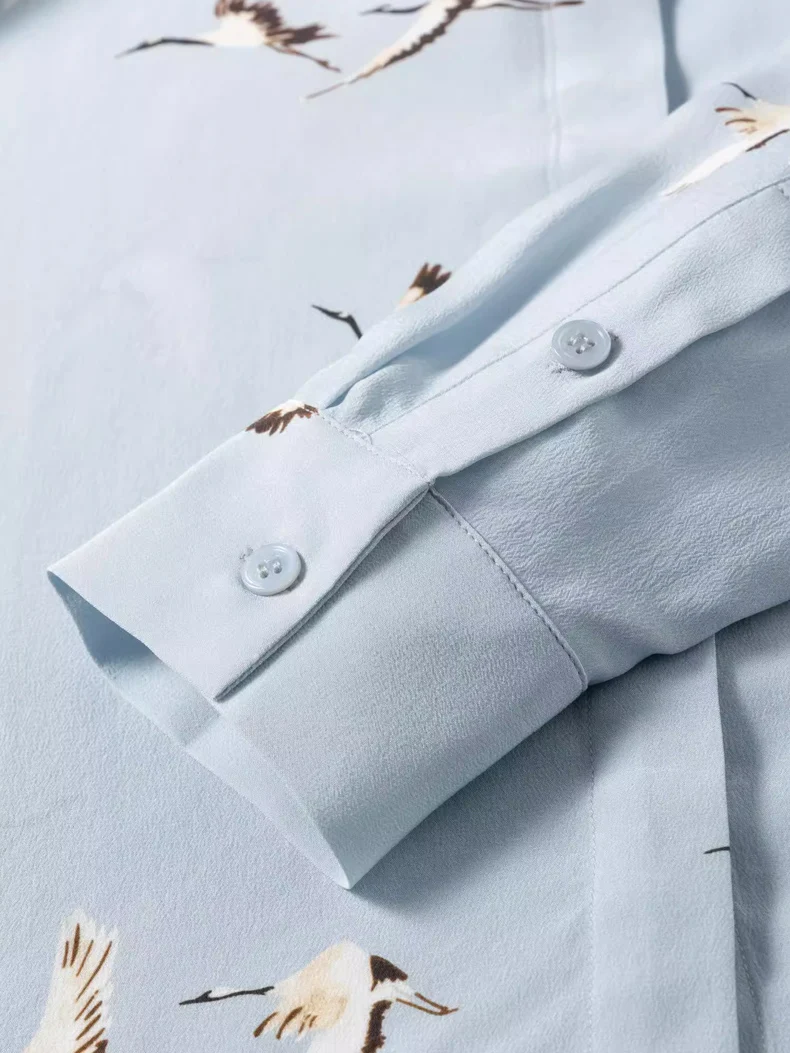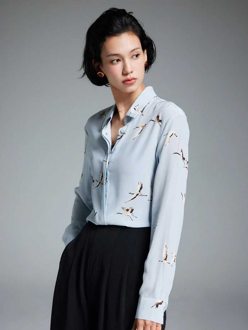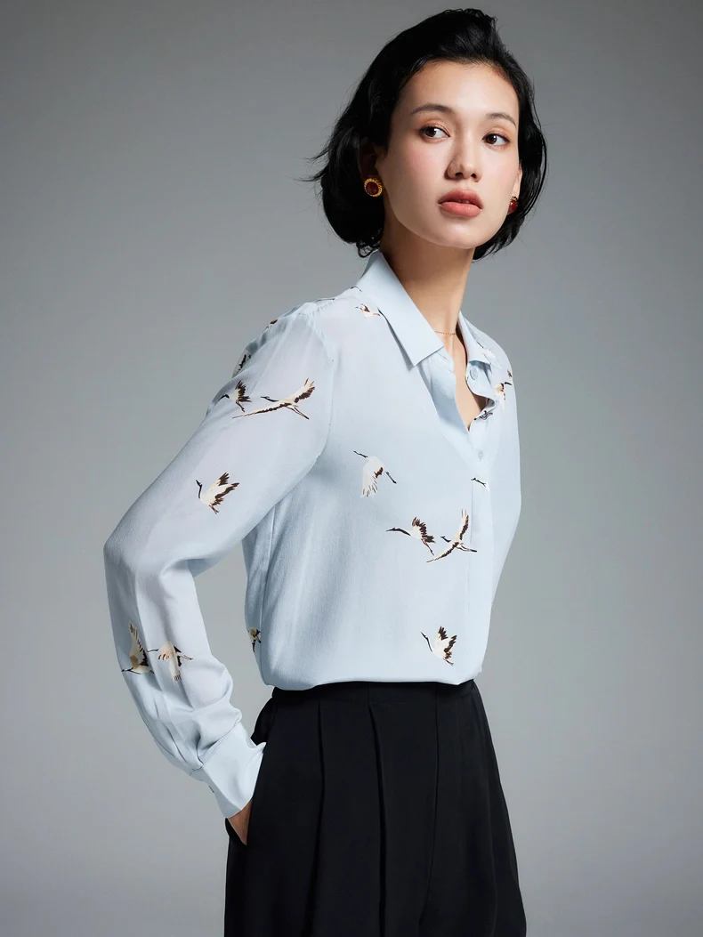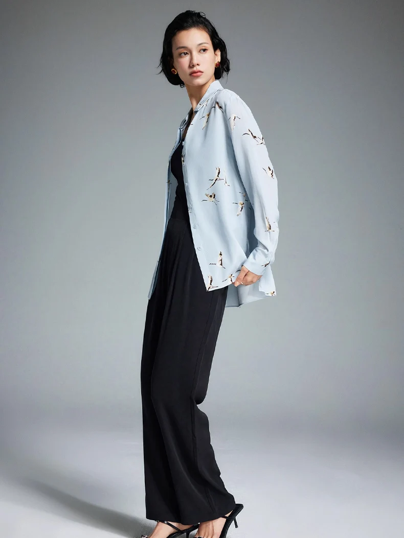 SuyaDream, Woman Printed Shirts, 100%Silk Crepe de chine, Turn Down Collar,...
