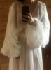 Women Sexy Chiffon Short Blouse Female See Through Super Long Sleeve Blusas...