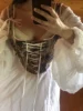 Прикольная вещица. Больше понравилось когда резинка на поясе. Когда под грудью, делает грудь безформенной. Чистая синтетика но к пошиву претензий нет. Ношу 50р.