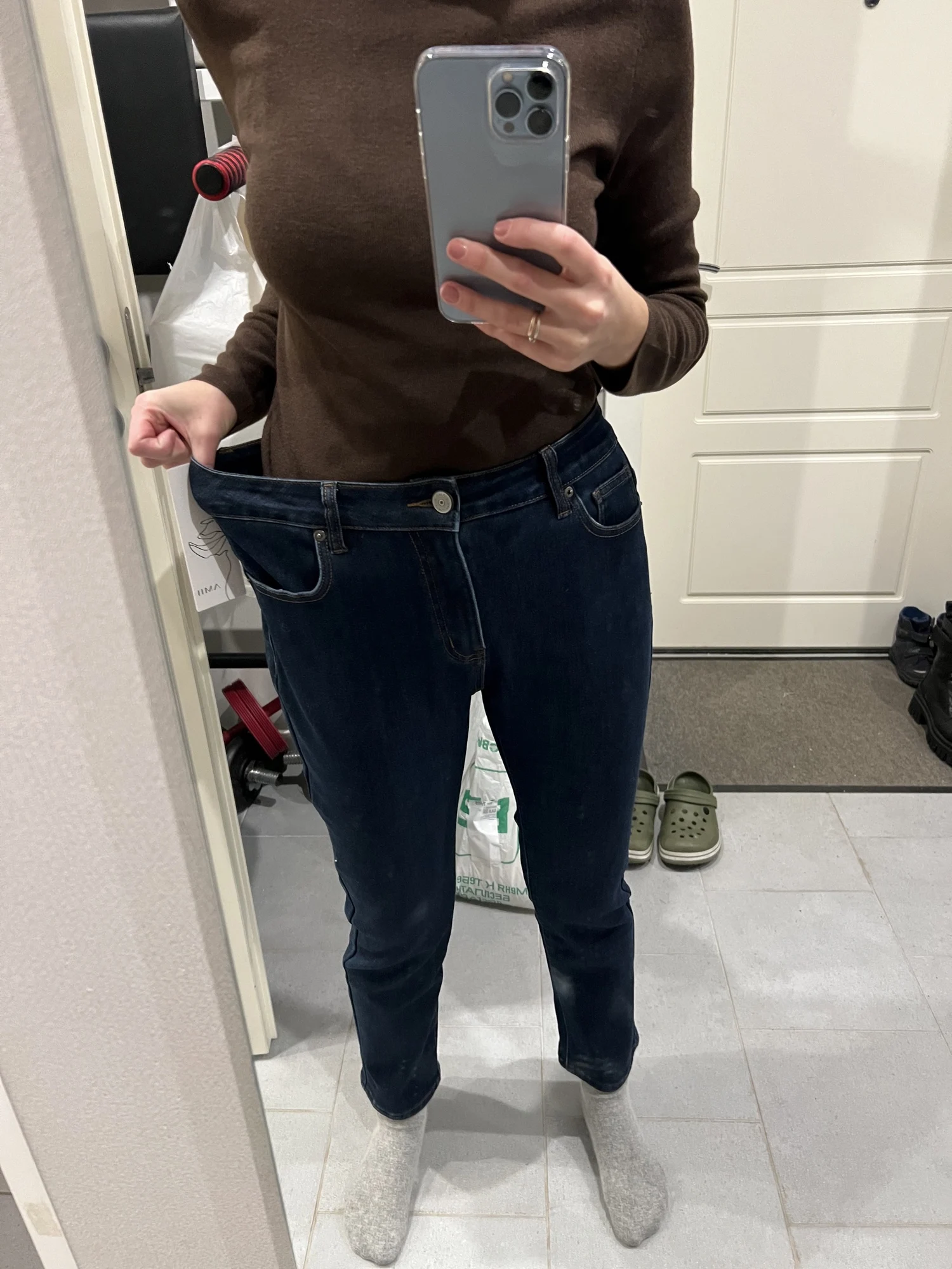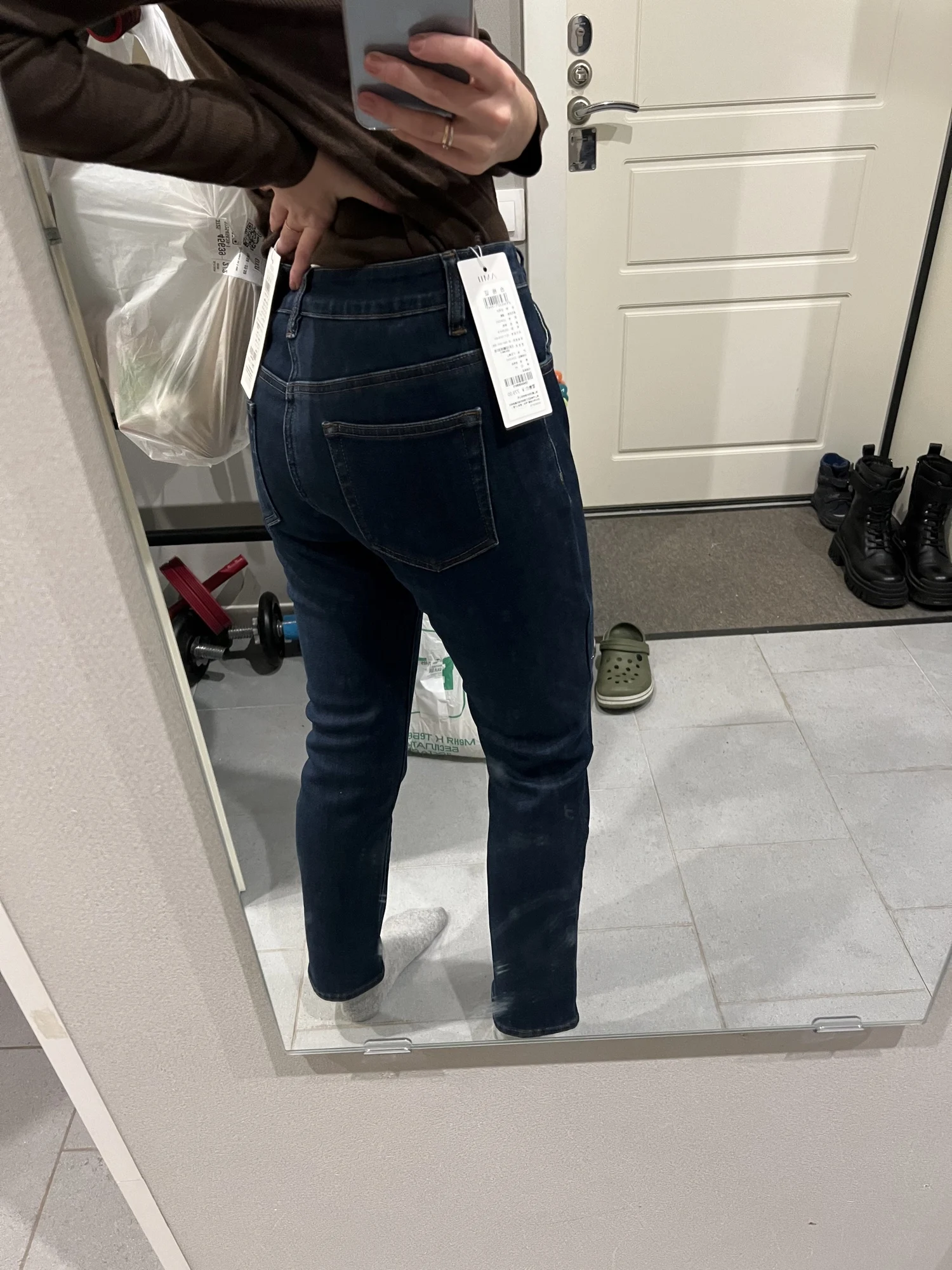 джинсы классные, рекомендую! приятный флисовый начес, дорогой красивый цвет. на свои параметры 168 см, 89-70-90 заказала размер L, ошиблась (в отзывах писали, что маломерки на 1-2 размера - это не так, надо было брать свой размер S, максимум М), они мне большие, на фото показываю насколько они эластичные, в поясе могу на 5-7 см оттянуть джинсы от талии🙈 по длине - не на высоких девушек, до 170 максимум как мне кажется, идеально сядет до 165. думаю перезаказать М или S теперь. покупала на распродаже 11.11, вышли в районе 2500 со всеми купонами и бонусамиDariya Z. 20 ноября 2024