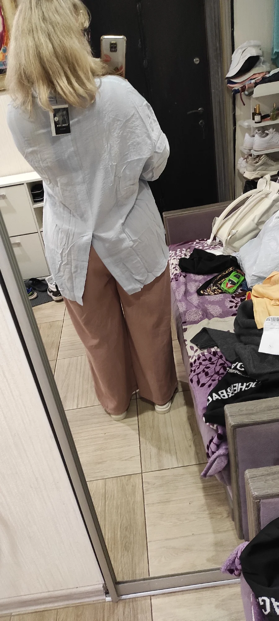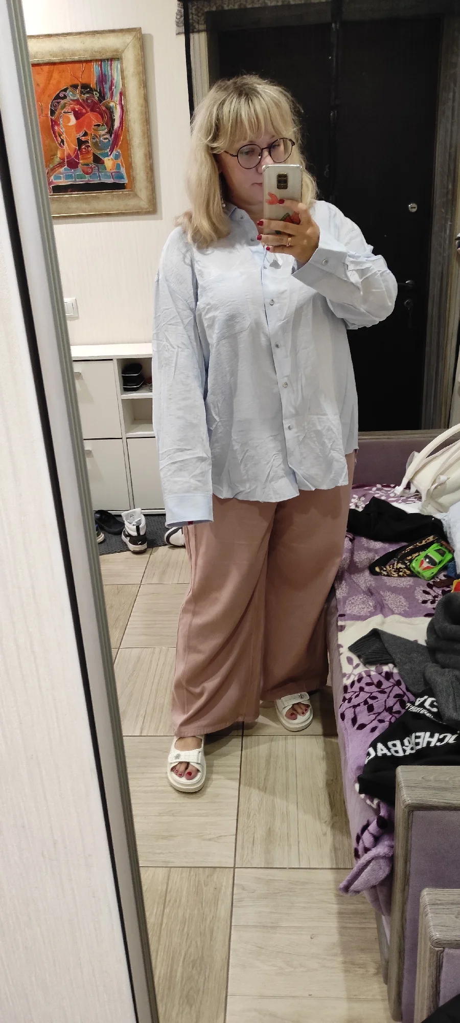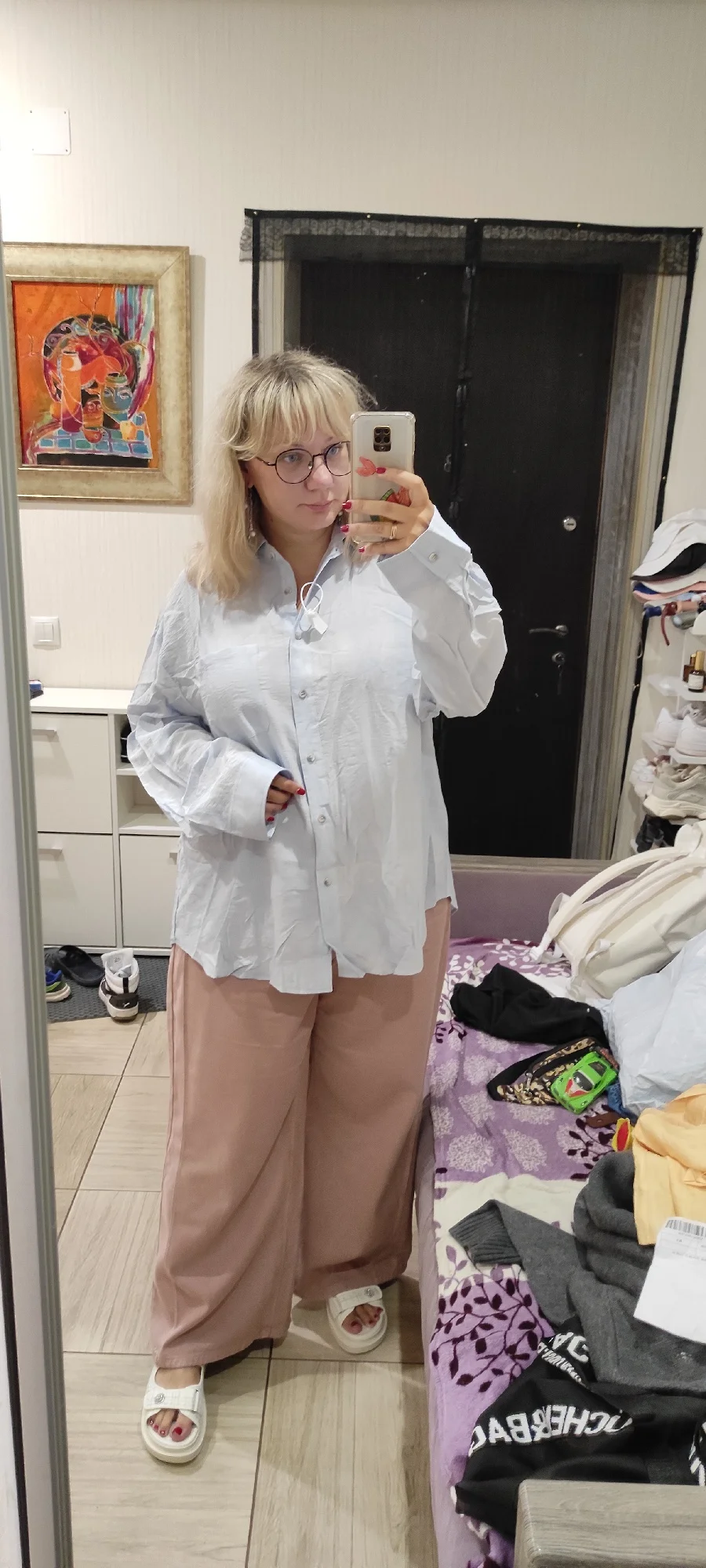 это чудо просто, как хороша рубашка. разрез сзади добавляет изюма. очень приятная ткань, как с холодком. и она очень большая, это кайф. на 110/92/122, рост 167 размер 3хл